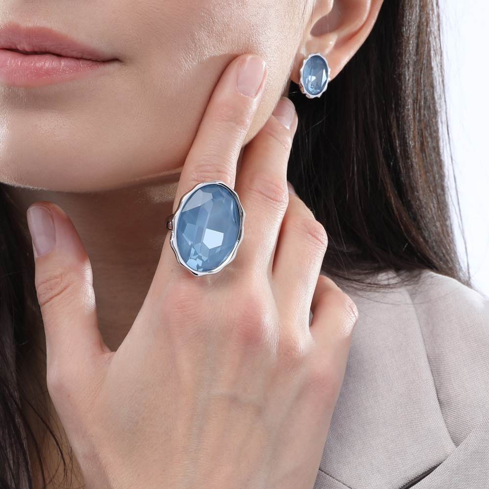 Описание: Изготовлено из ювелирного сплава на основе латуни с гальваническим покрытием родием. Изделие украшают кристаллы SW цвета байкальский лед. Размер украшения 30х20мм.