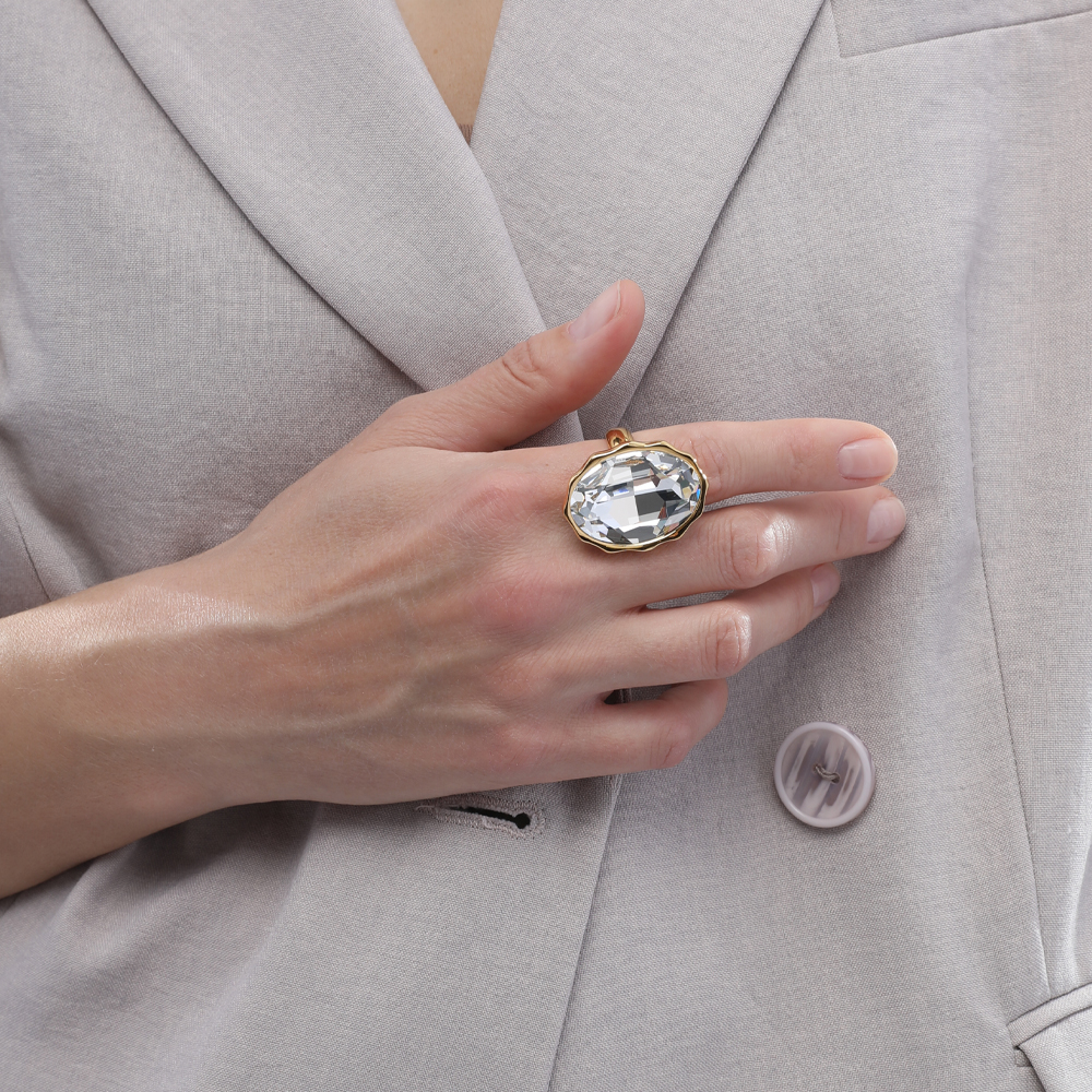 Описание: Изготовлено из ювелирного сплава на основе латуни с гальваническим покрытием золотом. Изделие украшают кристаллы SW белого цвета. Размер украшения 30х20мм.