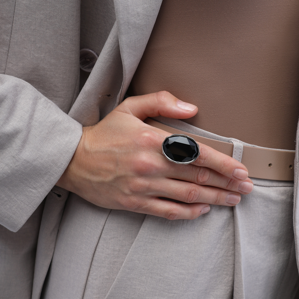 Описание: Изготовлено из ювелирного сплава на основе латуни с гальваническим покрытием родием. Изделие украшают кристаллы SW черного цвета. Размер украшения 30х20мм.