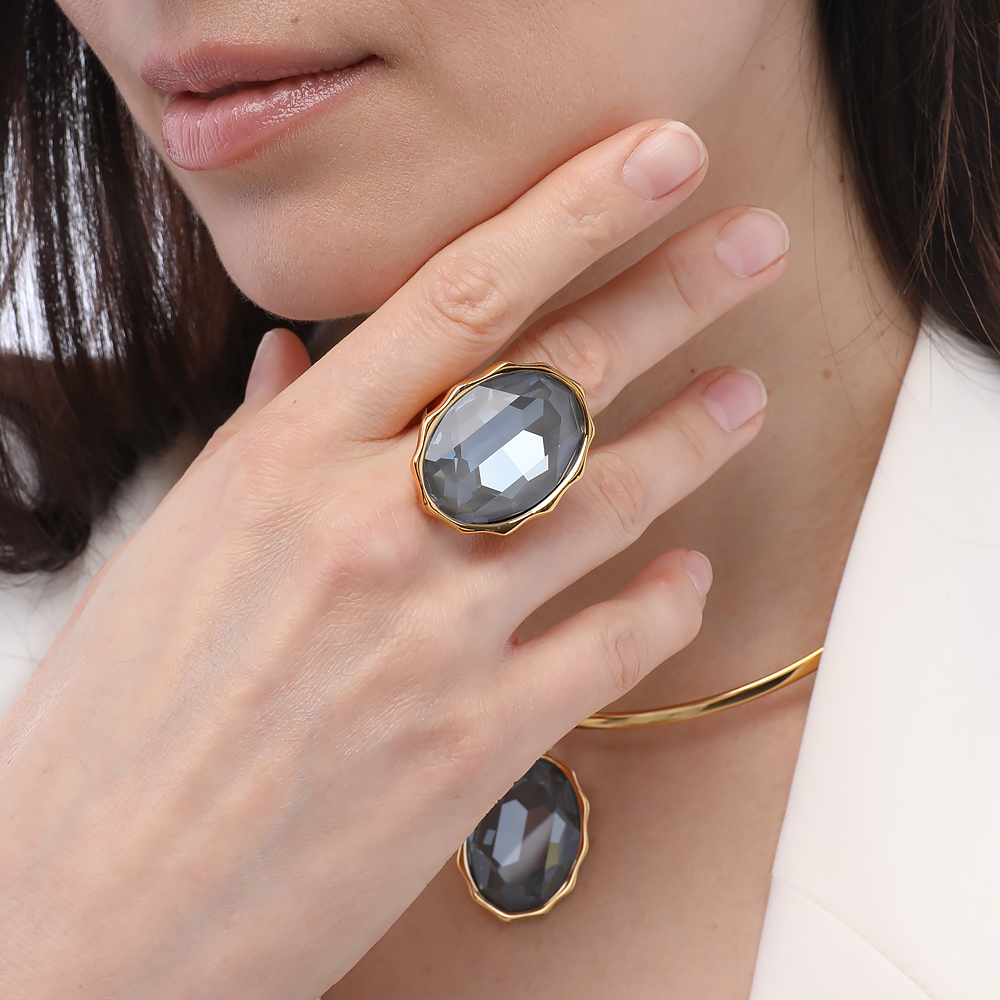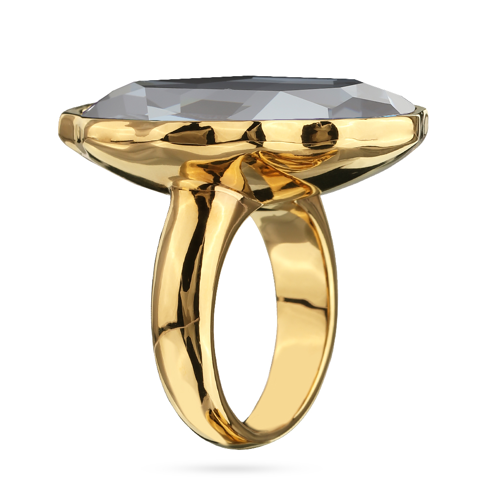 Описание: Изготовлено из ювелирного сплава на основе латуни с гальваническим покрытием золотом. Изделие украшают кристаллы SW дымчато-серого цвета. Размер украшения 30х20мм.