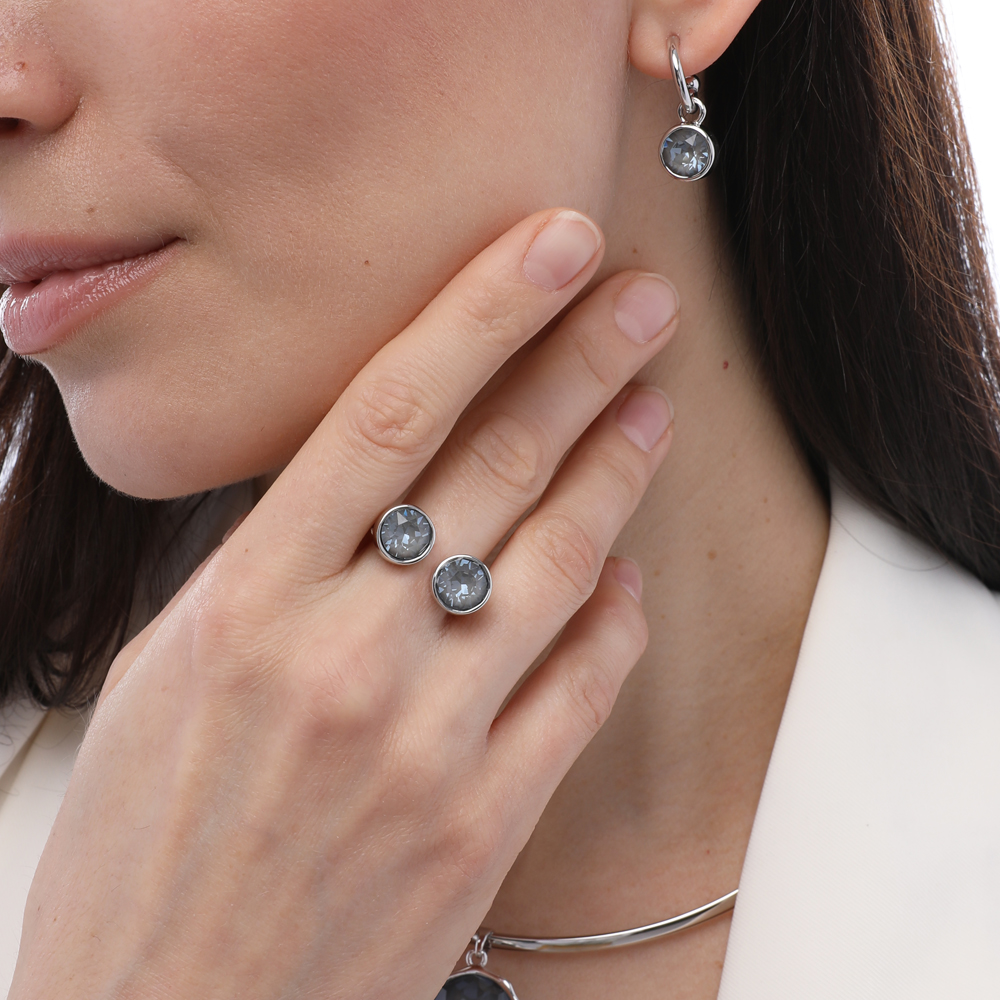 Описание: Изготовлено из ювелирного сплава на основе латуни с гальваническим покрытием родием. Изделие украшают кристаллы SW дымчато-серого цвета диаметром 8мм.