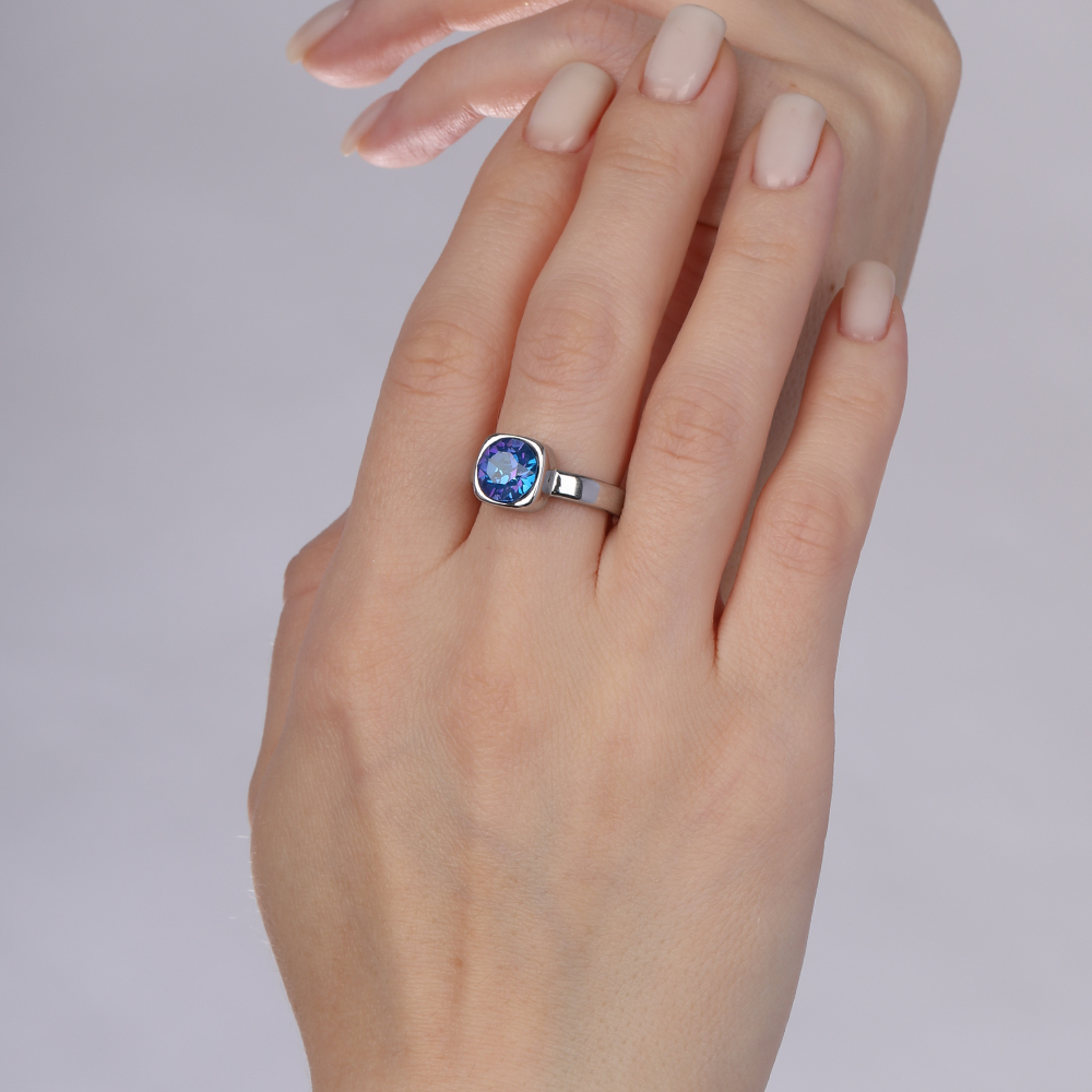 Описание: Изготовлено из ювелирного сплава на основе латуни с гальваническим покрытием родием. Изделие украшают кристаллы SW королевского синего цвета диаметром 8мм.