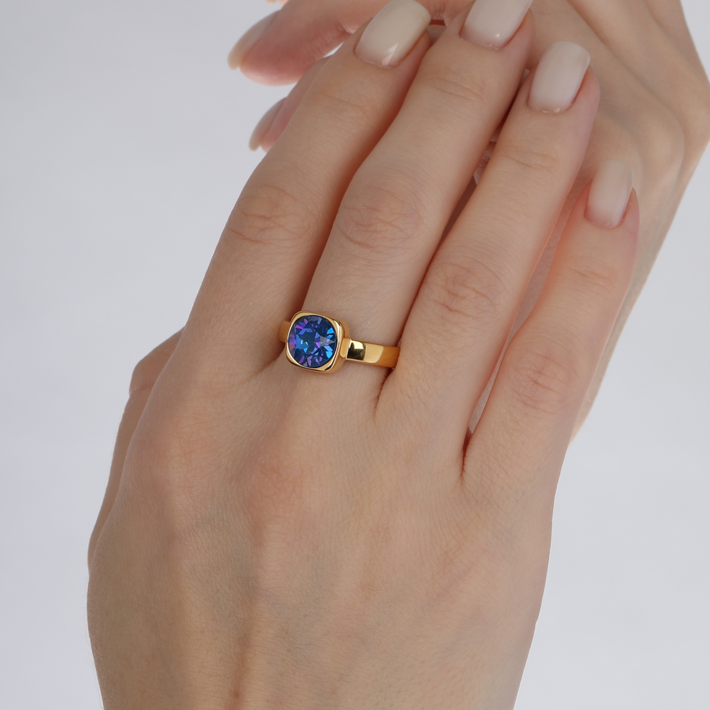 Описание: Изготовлено из ювелирного сплава на основе латуни с гальваническим покрытием золотом. Изделие украшают кристаллы SW королевского синего цвета диаметром 8мм.