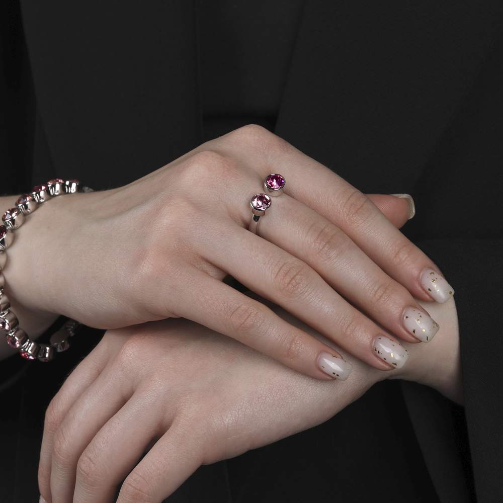 Описание: Изготовлено из ювелирного сплава на основе латуни с гальваническим покрытием родием. Изделие украшают кристаллы SW розового и светло-розового цвета диаметром 6мм.