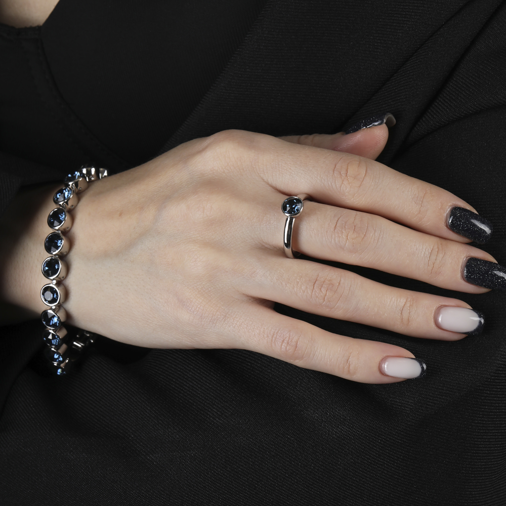 Кольцо Теннис (кристаллы SW темно-синие 6мм; покрытие родий)