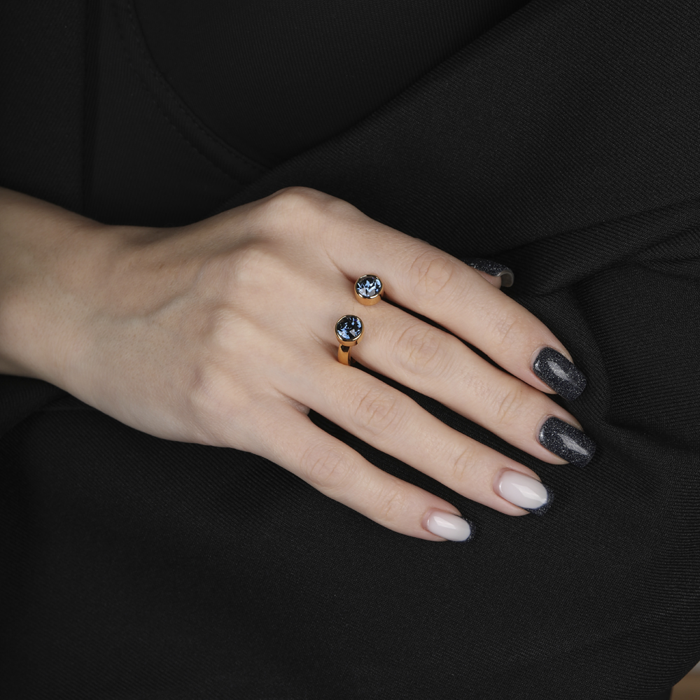Описание: Изготовлено из ювелирного сплава на основе латуни с гальваническим покрытием золотом. Изделие украшают кристаллы SW цвета монтана диаметром 6мм.