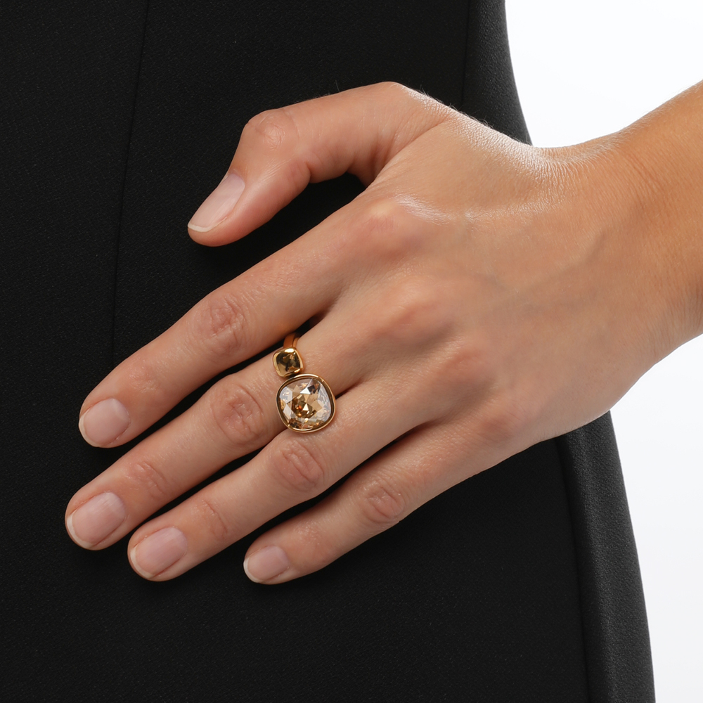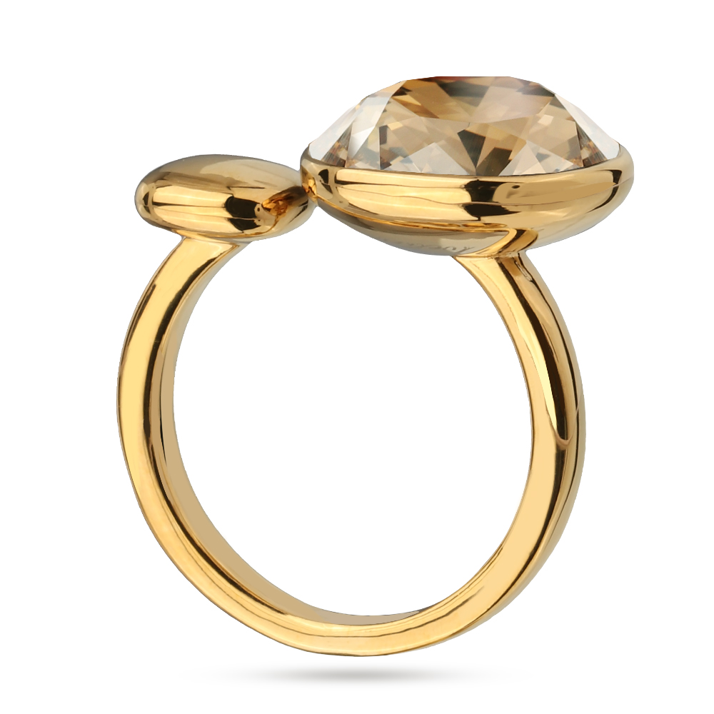 Описание: Изготовлено из ювелирного сплава на основе латуни с гальваническим покрытием золотом. Изделие украшают кристаллы SW цвета шампань диаметром 12мм.