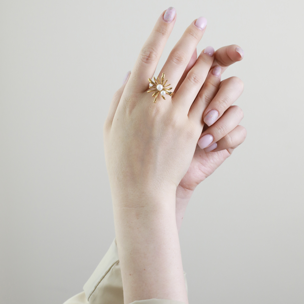 Описание: Изготовлено из ювелирного сплава на основе латуни с гальваническим покрытием золотом. Изделие украшает майорский жемчуг белого цвета диаметром мм. Размер см.