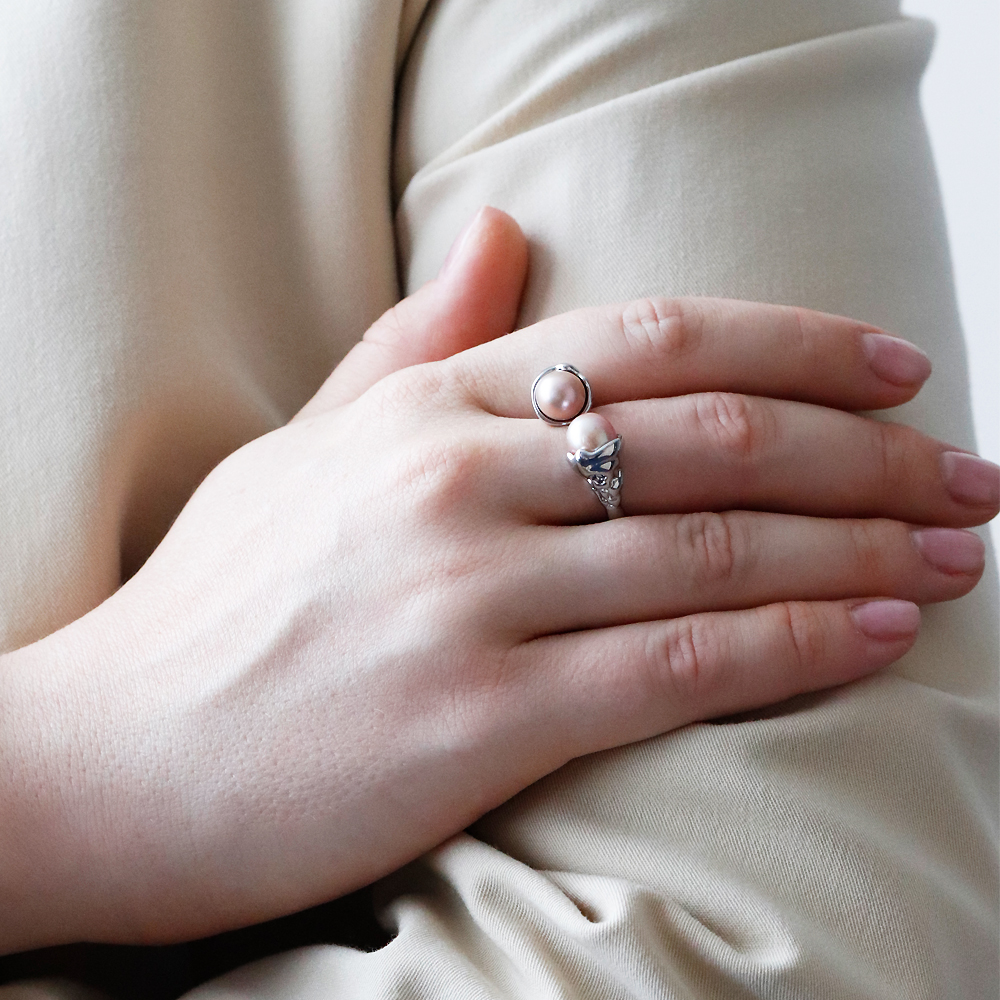 Описание: Изготовлено из ювелирного сплава на основе латуни с гальваническим покрытием родием. Изделие украшает натуральный жемчуг диаметром 8мм бензинового цвета.