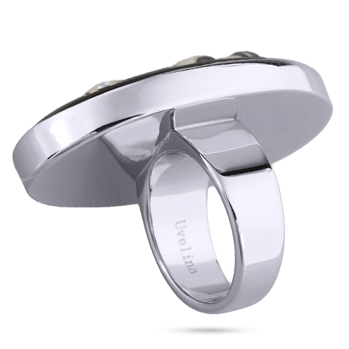 Описание: Изготовлено из ювелирного сплава на основе латуни с гальваническим покрытием родием. Изделие украшает эмаль черного, серого и белого цвета. Размер украшения 4х2.5см. Безразмерное.