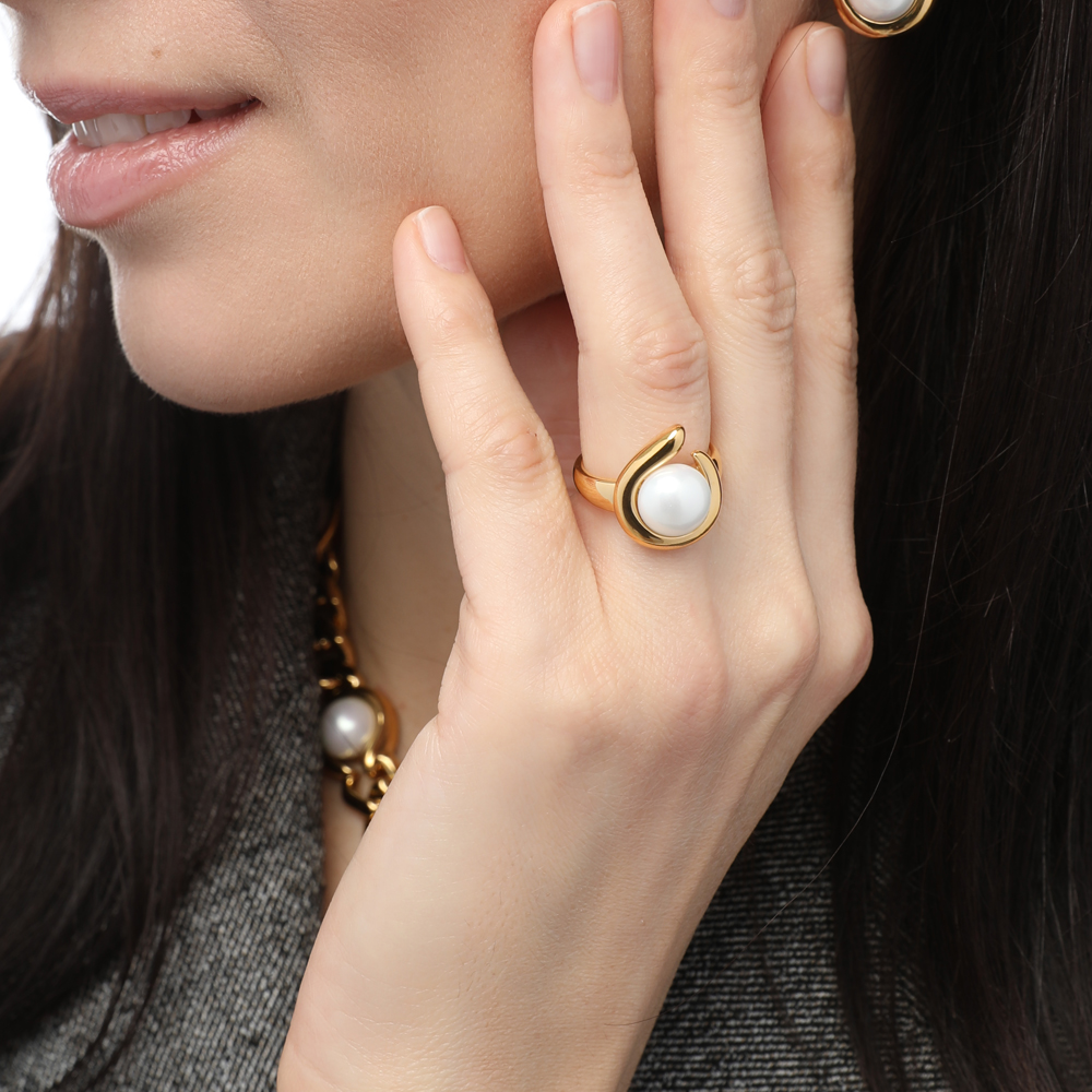 Описание: Изготовлено из ювелирного сплава на основе латуни с гальваническим покрытием золотом. Изделие украшает майорский круглый жемчуг белого цвета диаметром 12мм.