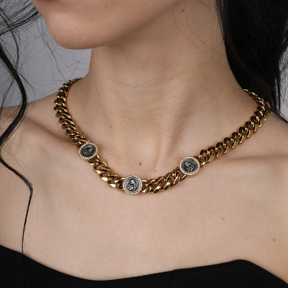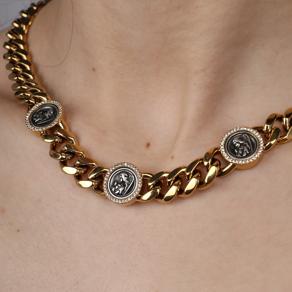 Описание: Изготовлено из ювелирного сплава на основе латуни с гальваническим покрытием золотом и античным серебром. Изделие украшают кристаллы SW белого цвета. Длина 43-48см. Диаметр украшения 1.5см.
