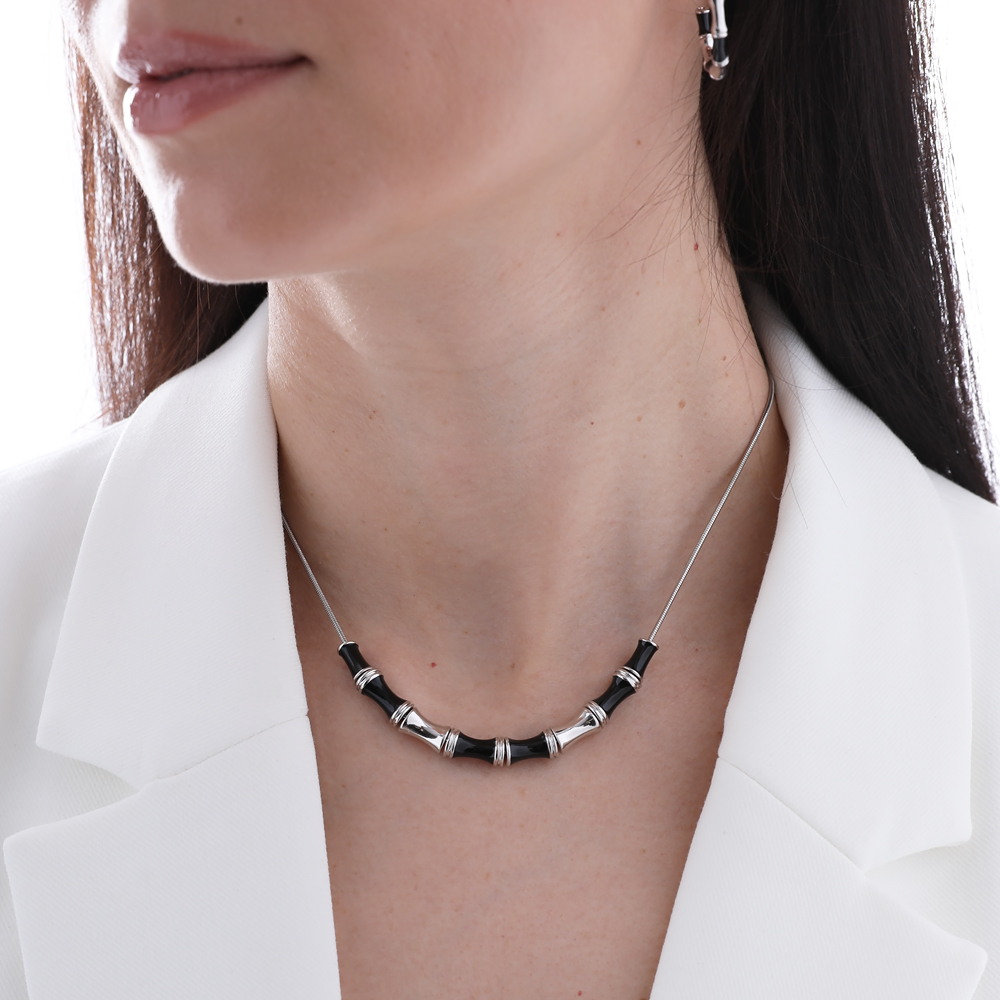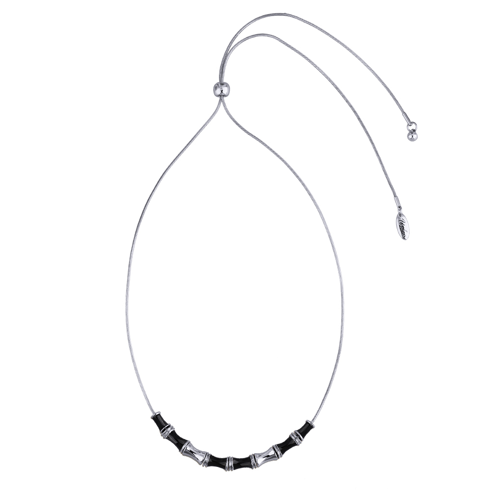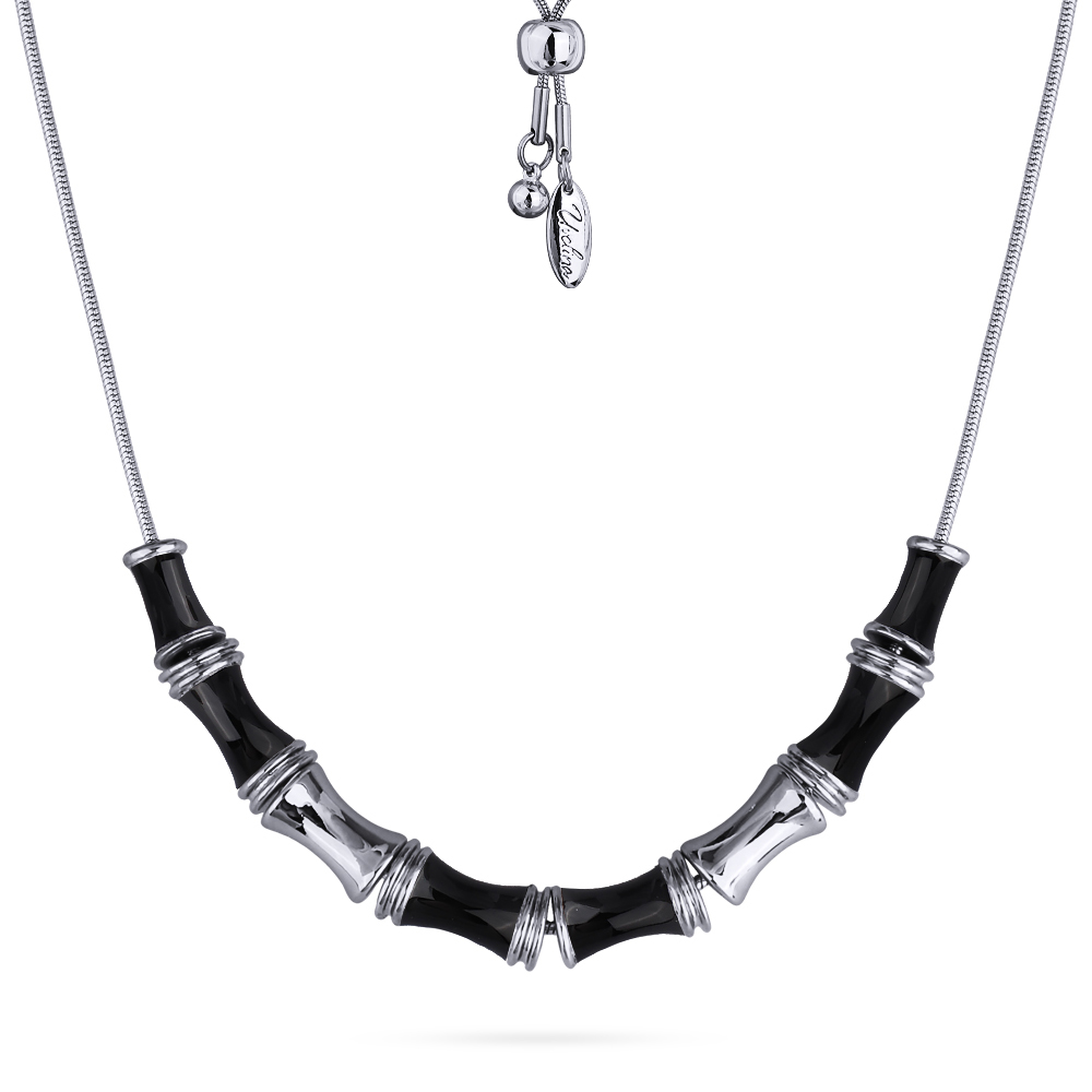 Описание: Изготовлено из ювелирного сплава на основе латуни с гальваническим покрытием родием. Изделие украшает черная эмаль. На цепочке установлен регулятор длины. Максимальная длина цепочки 70см