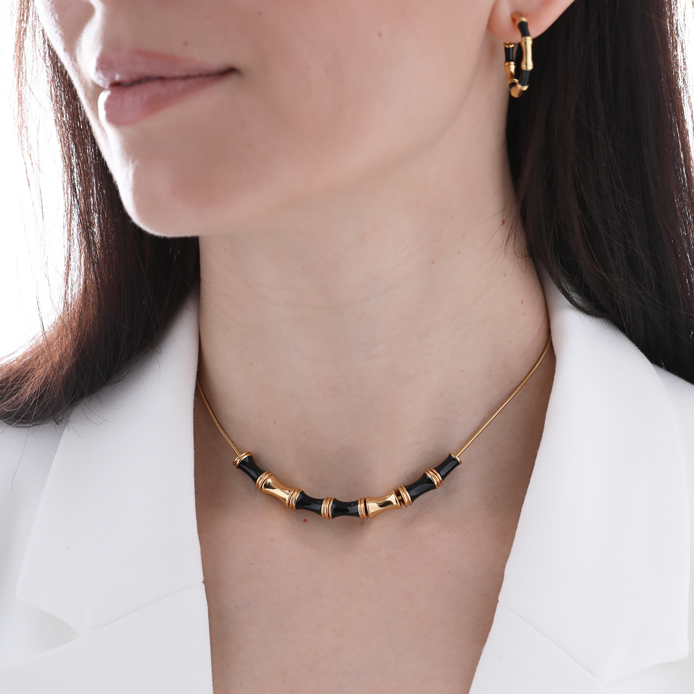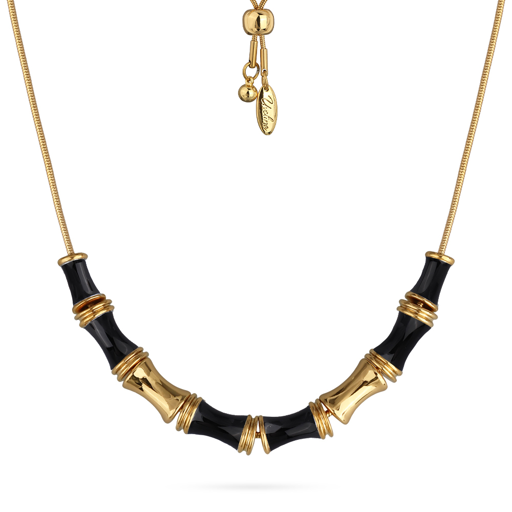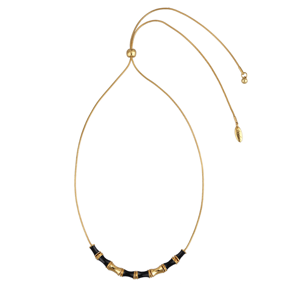 Описание: Изготовлено из ювелирного сплава на основе латуни с гальваническим покрытием золотом. Изделие украшает черная эмаль. На цепочке установлен регулятор длины. Максимальная длина цепочки 70см