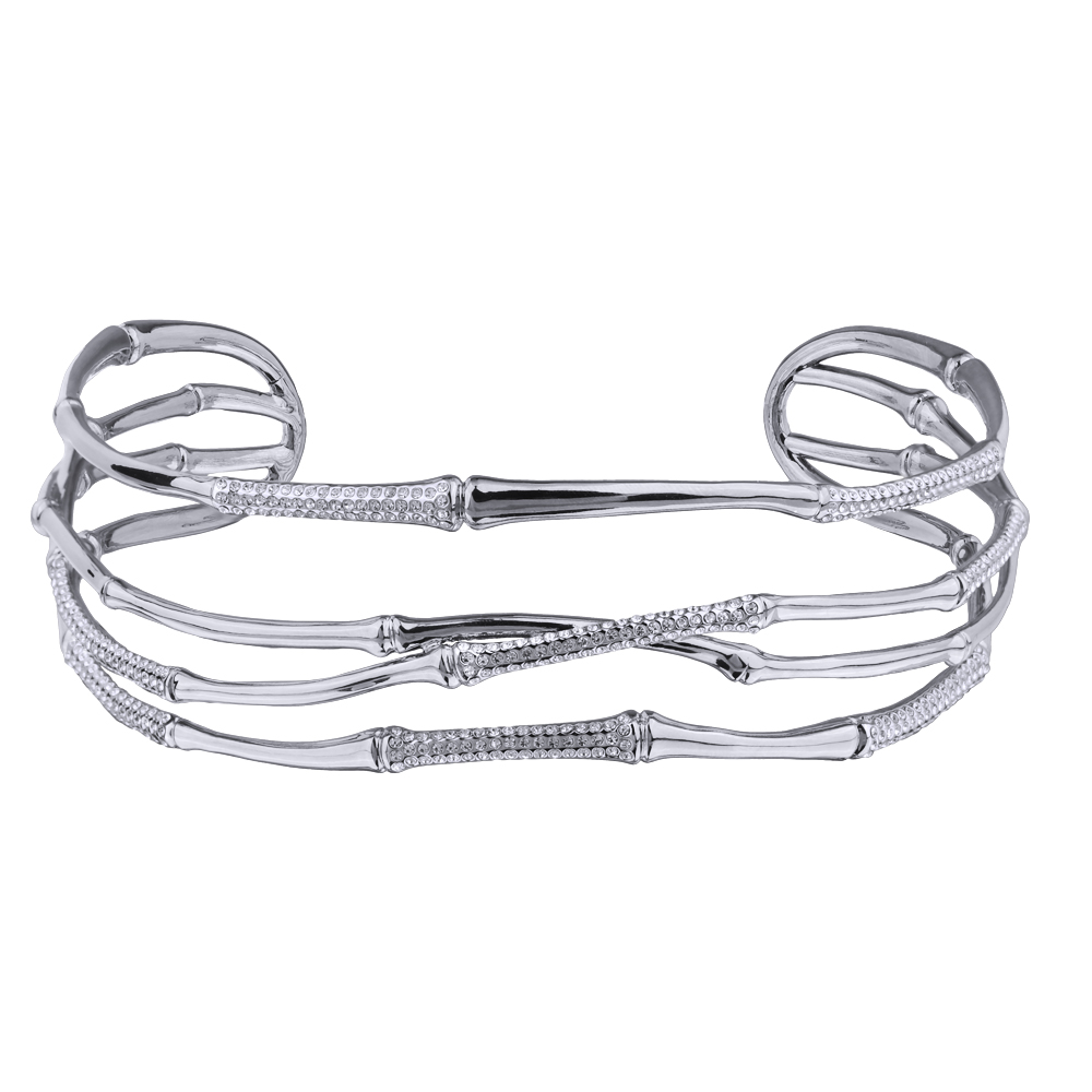 Описание: Изготовлено из ювелирного сплава на основе латуни с гальваническим покрытием родием. Изделие украшают белые кристаллы. Ширина колье 3см.