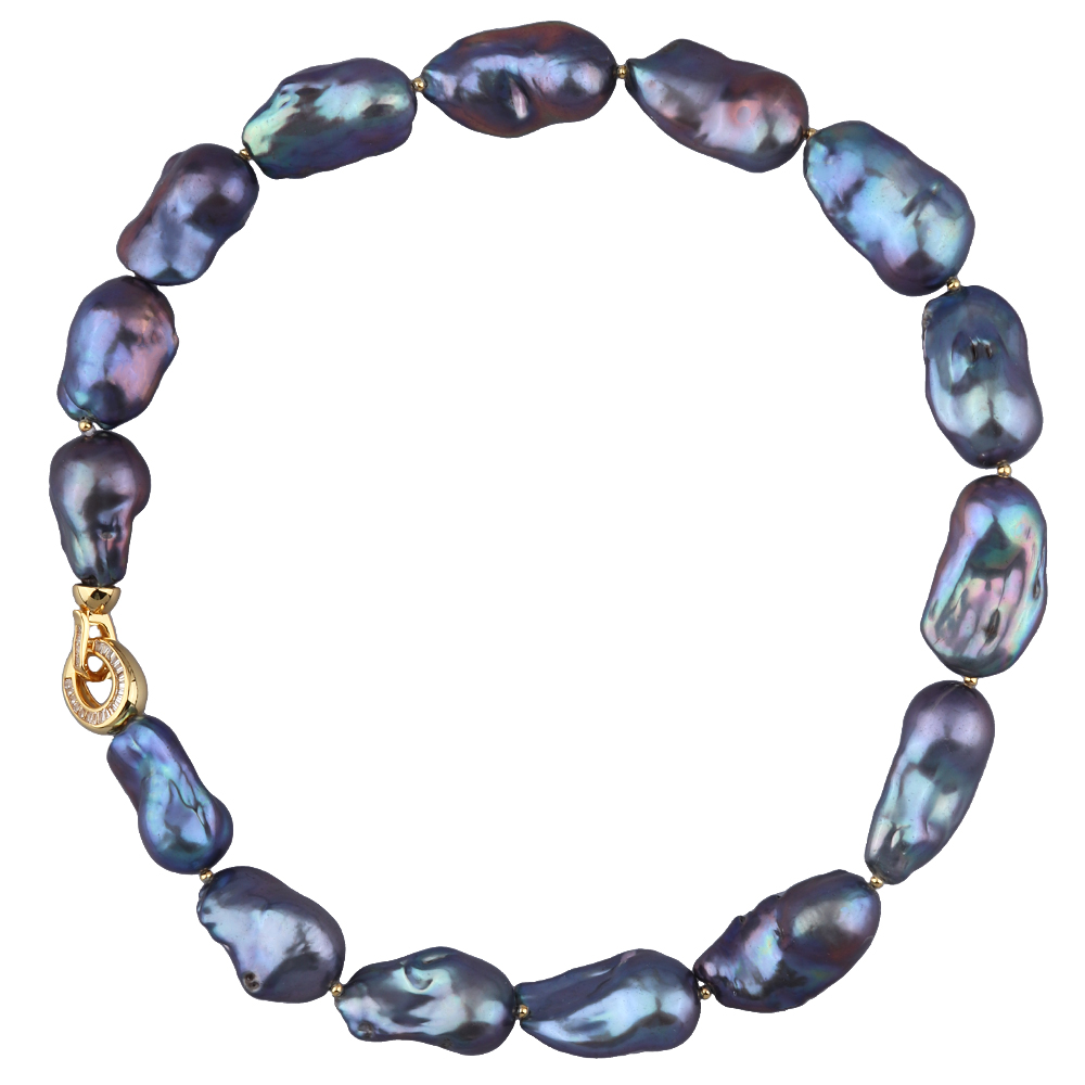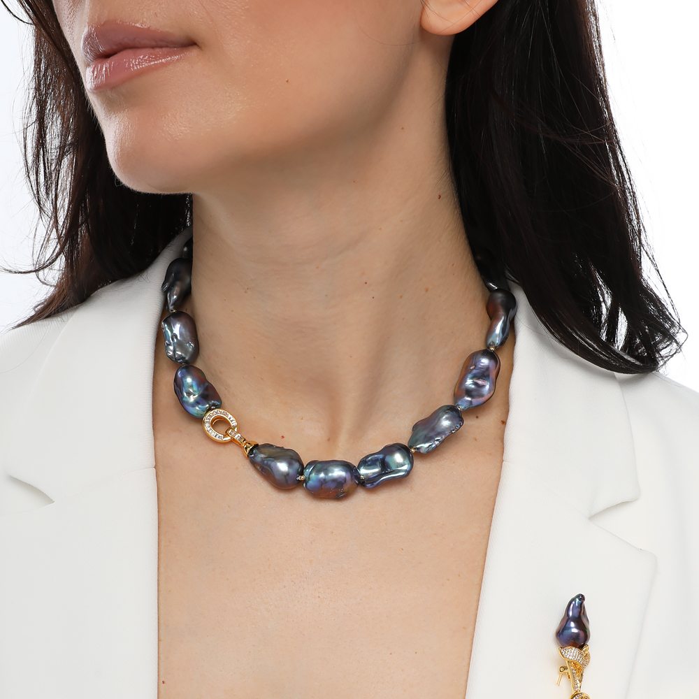 Описание: Изготовлено из ювелирного сплава на основе латуни с гальваническим покрытием золотом. Колье выполнено из натурального бензинового барочного жемчуга диаметром 15-25мм и фианиты белого цвета. Длина 45см. *Цвет и форма жемчужин может отличаться от изображенной на фото.