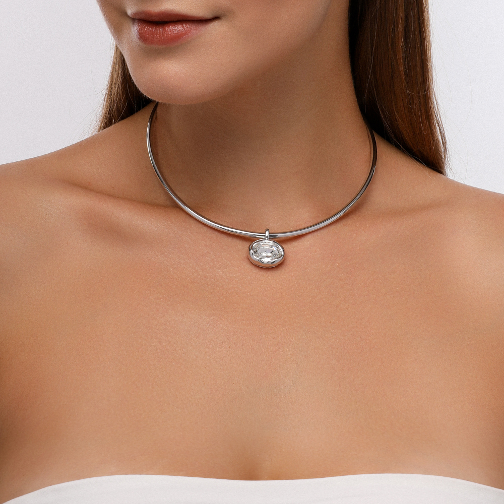 Описание: Изготовлено из ювелирного сплава на основе латуни с гальваническим покрытием родием. Изделие украшают кристаллы SW белого цвета. Размер кристалла 18х13мм. Длина 38-40см.