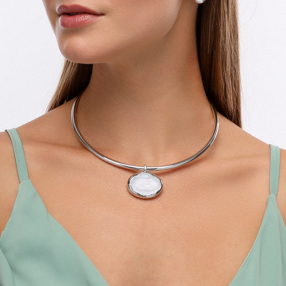Описание: Изготовлено из ювелирного сплава на основе латуни с гальваническим покрытием родием. Изделие украшают кристаллы SW цвета белый электрик. Размер кулона 34х26мм. Длина 38-40см.