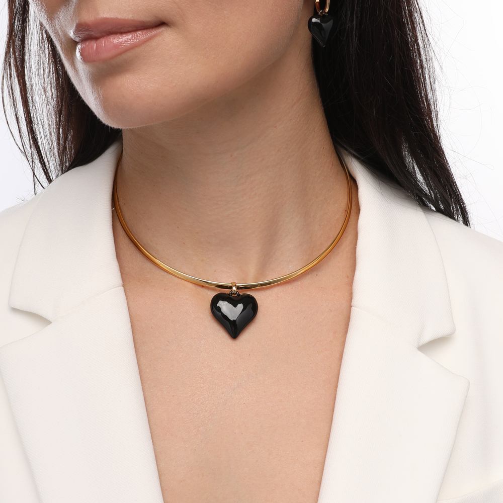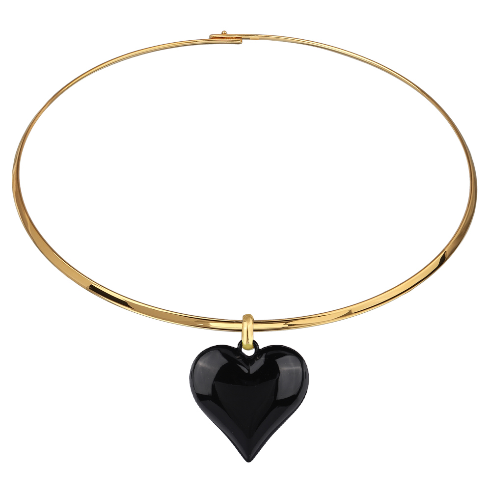 Описание: Изготовлено из ювелирного сплава на основе латуни с гальваническим покрытием золотом. Изделие украшает эмаль черного цвета. Размер кулона 2.5х2.5см. Длина колье 42см.