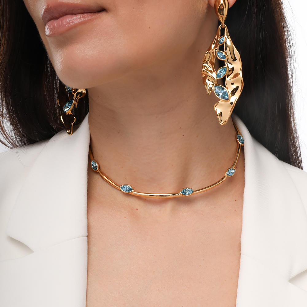 Колье Эйва (кристаллы SW аквамарин; покрытие золото)