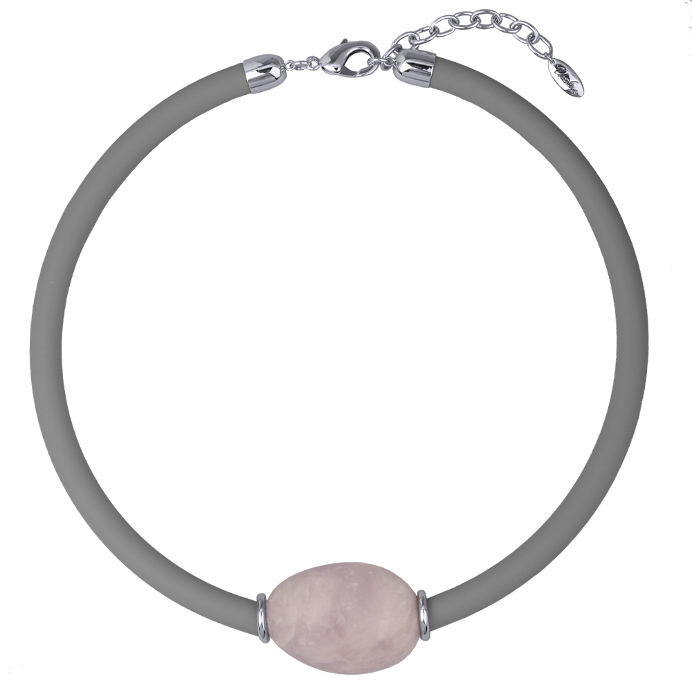 Описание: Изготовлено из ювелирного сплава на основе латуни с гальваническим покрытием родием. Изделие украшают розовый кварц и серый каучуковый шнурок. Длина каучукового шнурка 45см. Замок-карабин с удлинителем 5см.