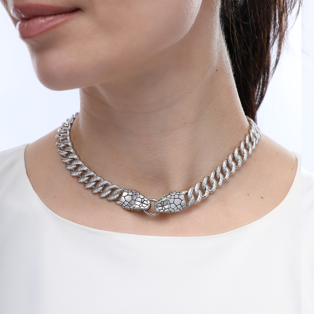 Описание: Изготовлено из ювелирного сплава на основе латуни с гальваническим покрытием античным серебром. Изделие украшают зеленые кристаллы SW. Длина 42-47см.