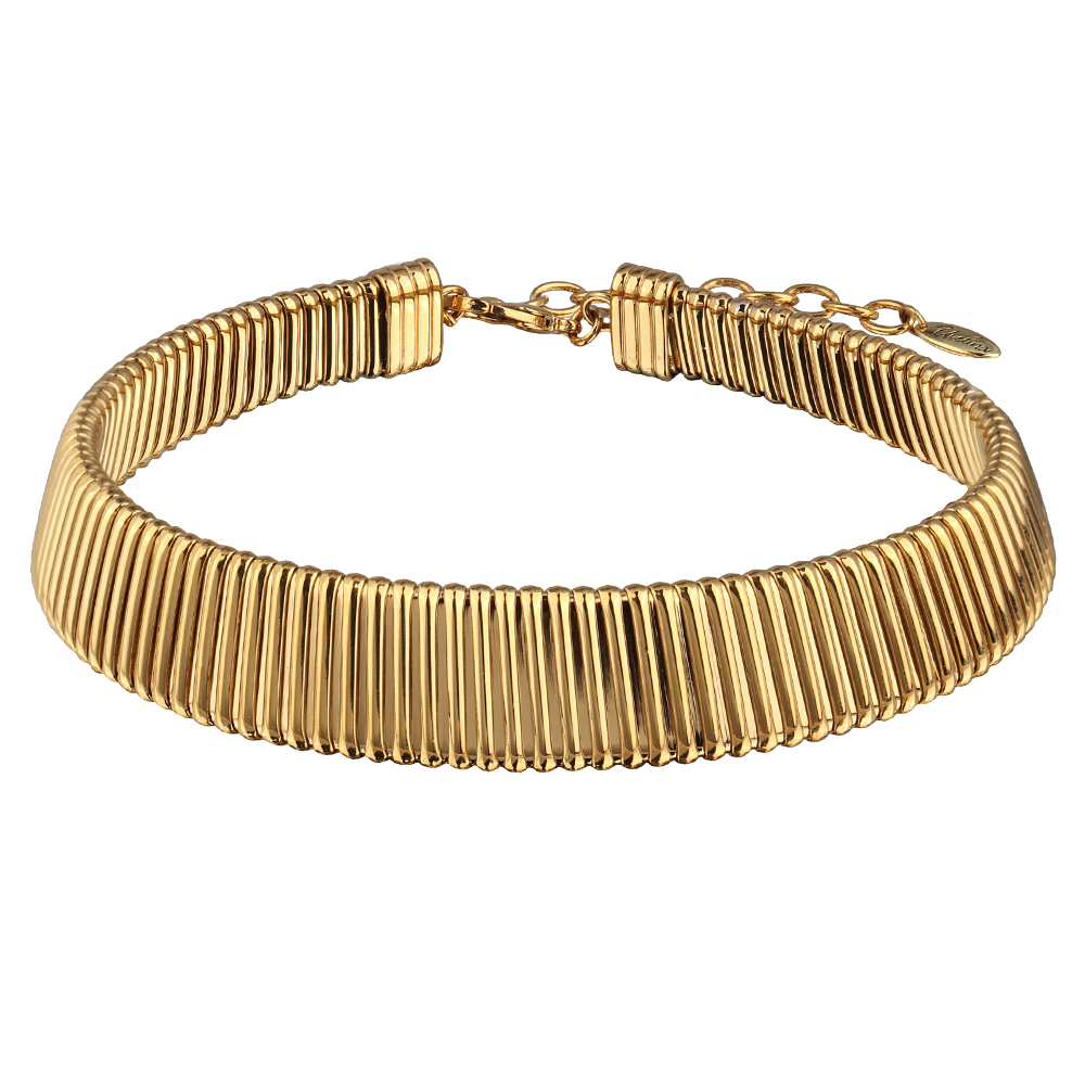 Описание: Изготовлено из ювелирного сплава на основе латуни с гальваническим покрытием золотом. Ширина 16-22мм. Длина 35см, удлинитель 7см.