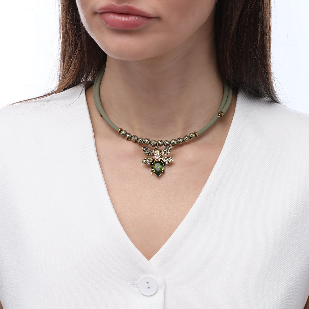 Вставка: кристаллы SW зеленые, шампань, каучук бронза