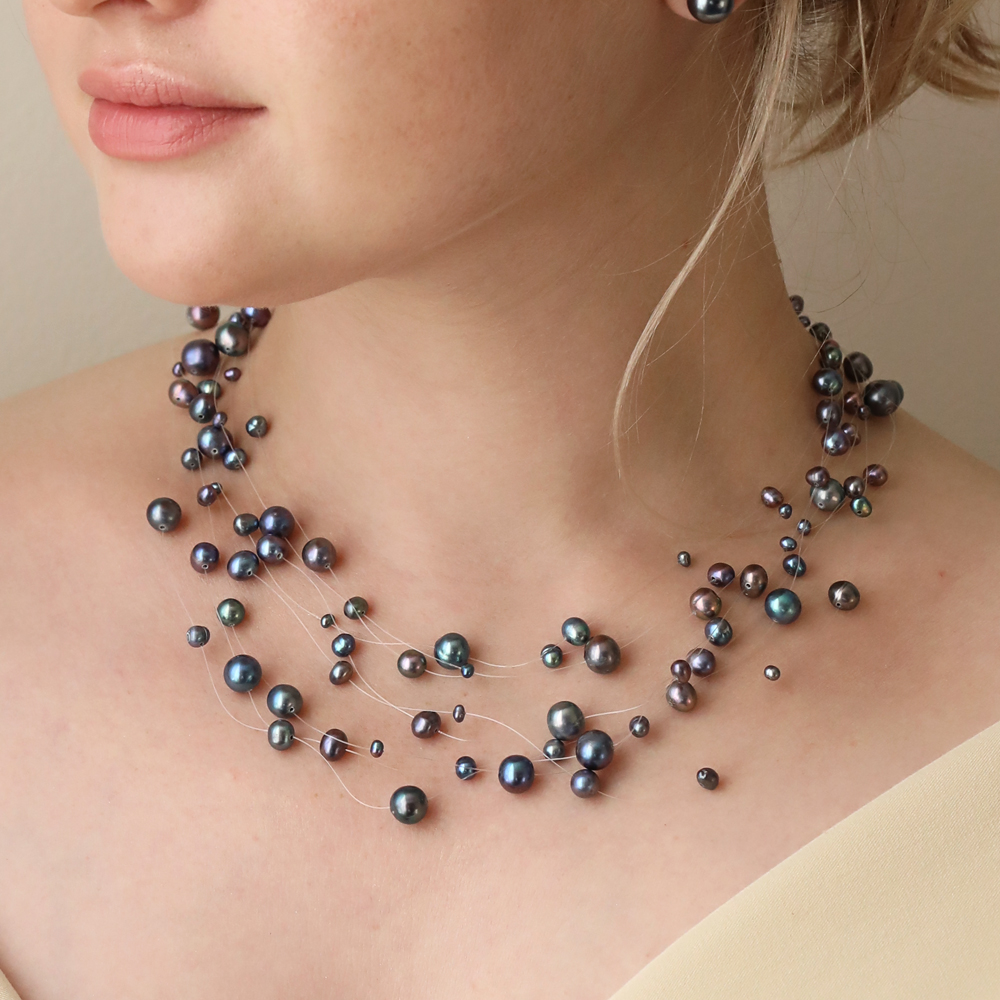 Описание: Изготовлено из ювелирного сплава на основе латуни с гальваническим покрытием золотом. Изделие украшает бензиновый жемчуг диаметром 4-7мм. Длина колье 42см. Замок-карабин с удлинителем 5см.