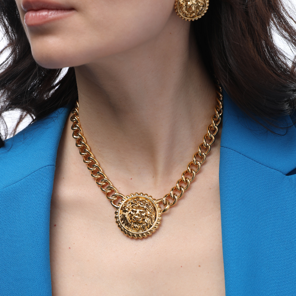 Описание: Изготовлено из ювелирного сплава на основе латуни с гальваническим покрытием золотом с патиной. Длина 45см. Замок-карабин с удлинителем 5см. Диаметр украшения 3, 5см.