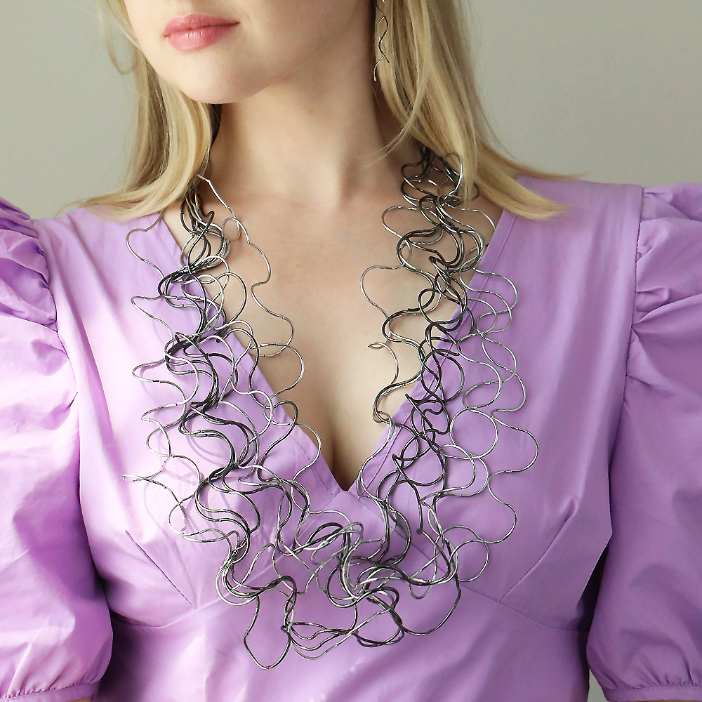 Описание: Изготовлено из ювелирного сплава на основе латуни с гальваническим покрытием родием и черным родием. Длина 90см. Замок-карабин с удлинителем 5см. 10 нитей.