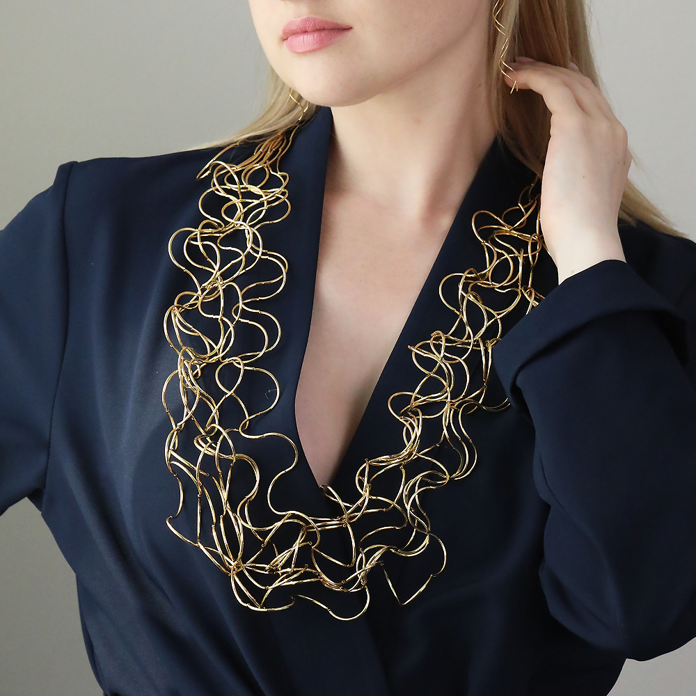 Описание: Изготовлено из ювелирного сплава на основе латуни с гальваническим покрытием золотом. Длина 90см. Замок-карабин с удлинителем 5см. 10 нитей.