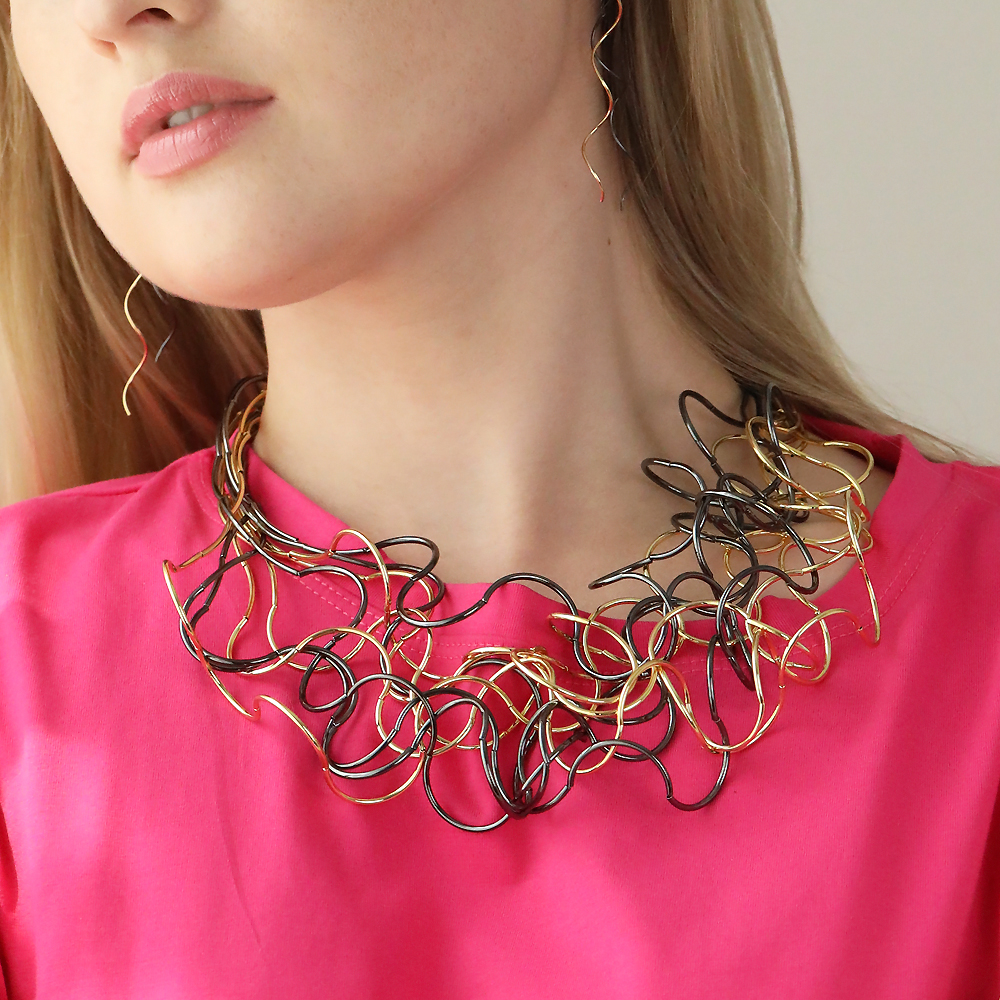 Описание: Изготовлено из ювелирного сплава на основе латуни с гальваническим покрытием золотом и черным родием. Длина 55см. Замок-карабин с удлинителем 5см. 10 нитей.