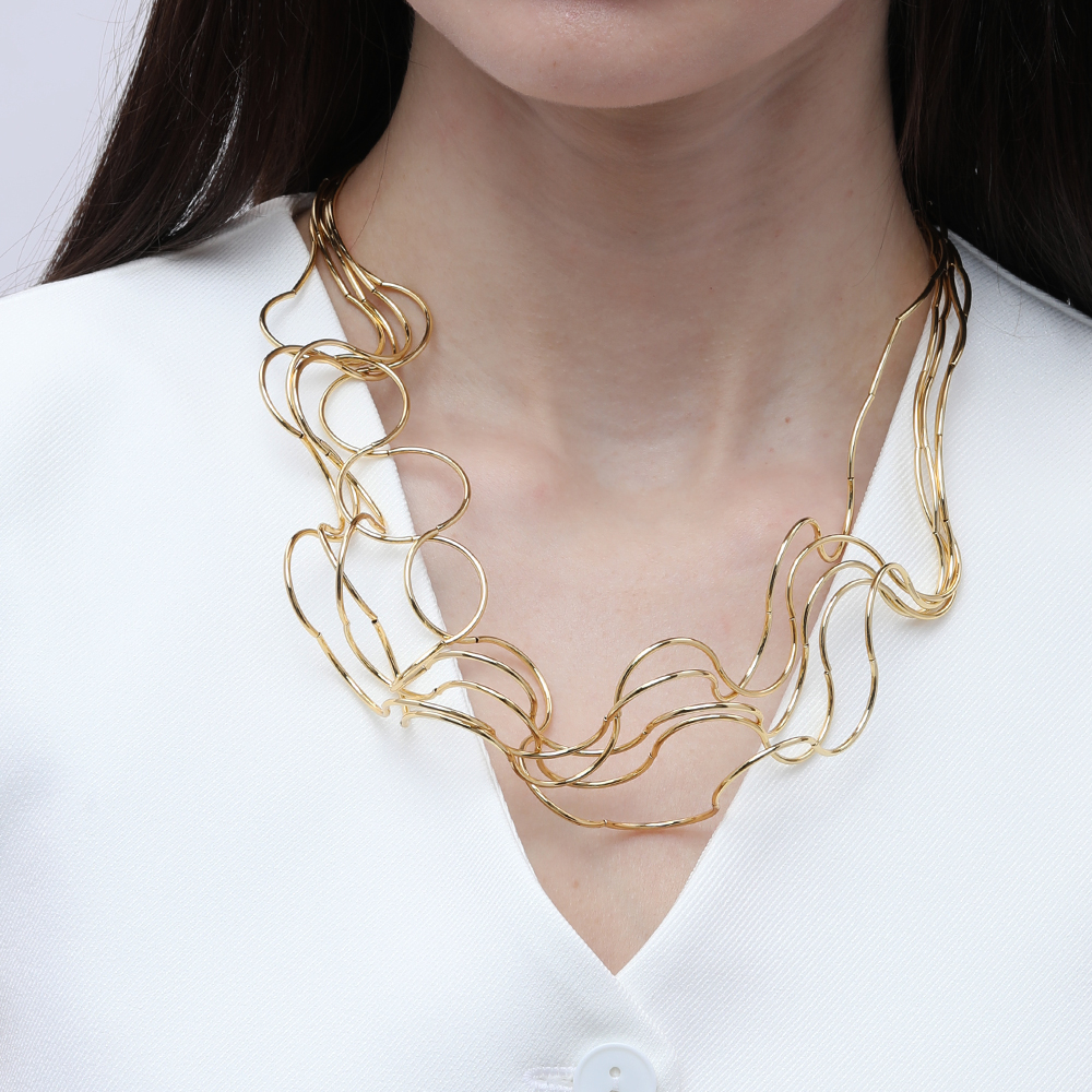 Описание: Изготовлено из ювелирного сплава на основе латуни с гальваническим покрытием золотом. Длина 55см. Замок-карабин с удлинителем 5см. 5 нитей.