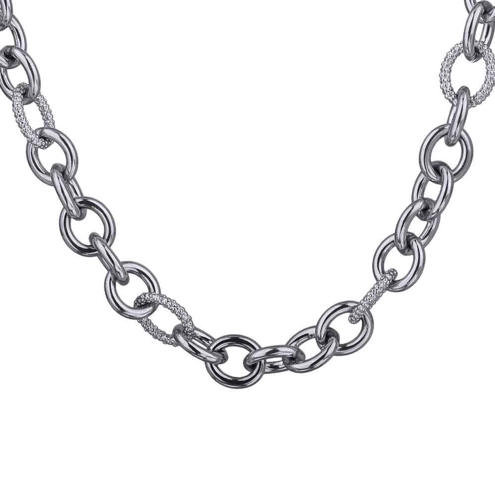 Описание: Изготовлено из ювелирного сплава на основе латуни с гальваническим покрытием родием. Длина 80см. Замок-якорь.