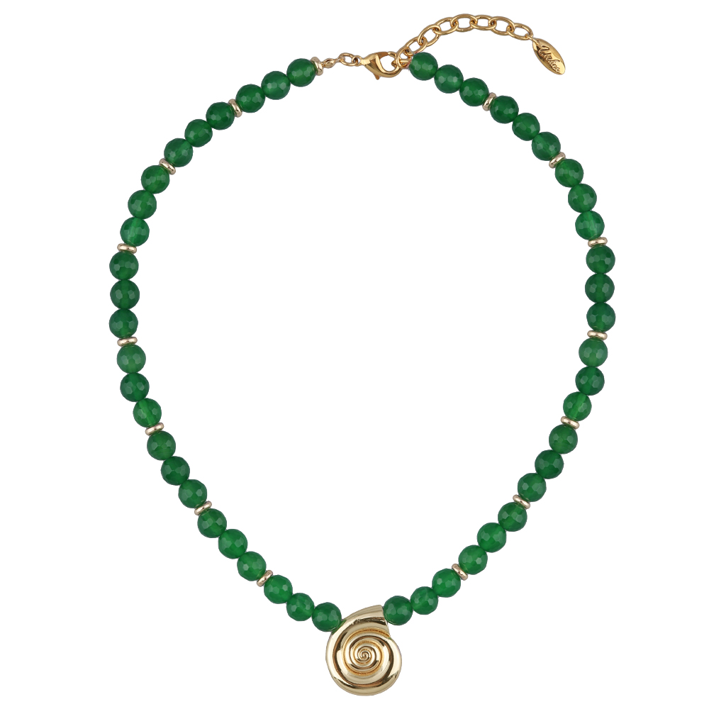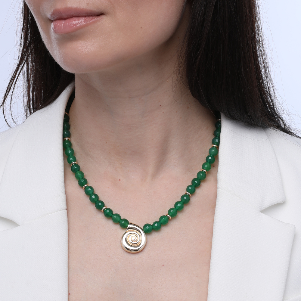 Вставка: Колье зеленый агат, кулон 22*24мм, покрытие золото,45-53см