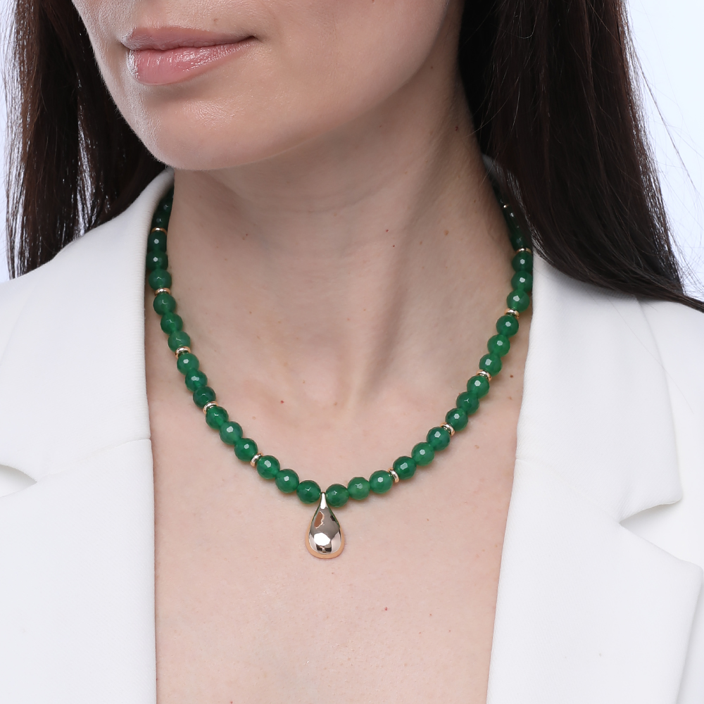 Колье Селена (агат зеленый; покрытие золото) 46-52см