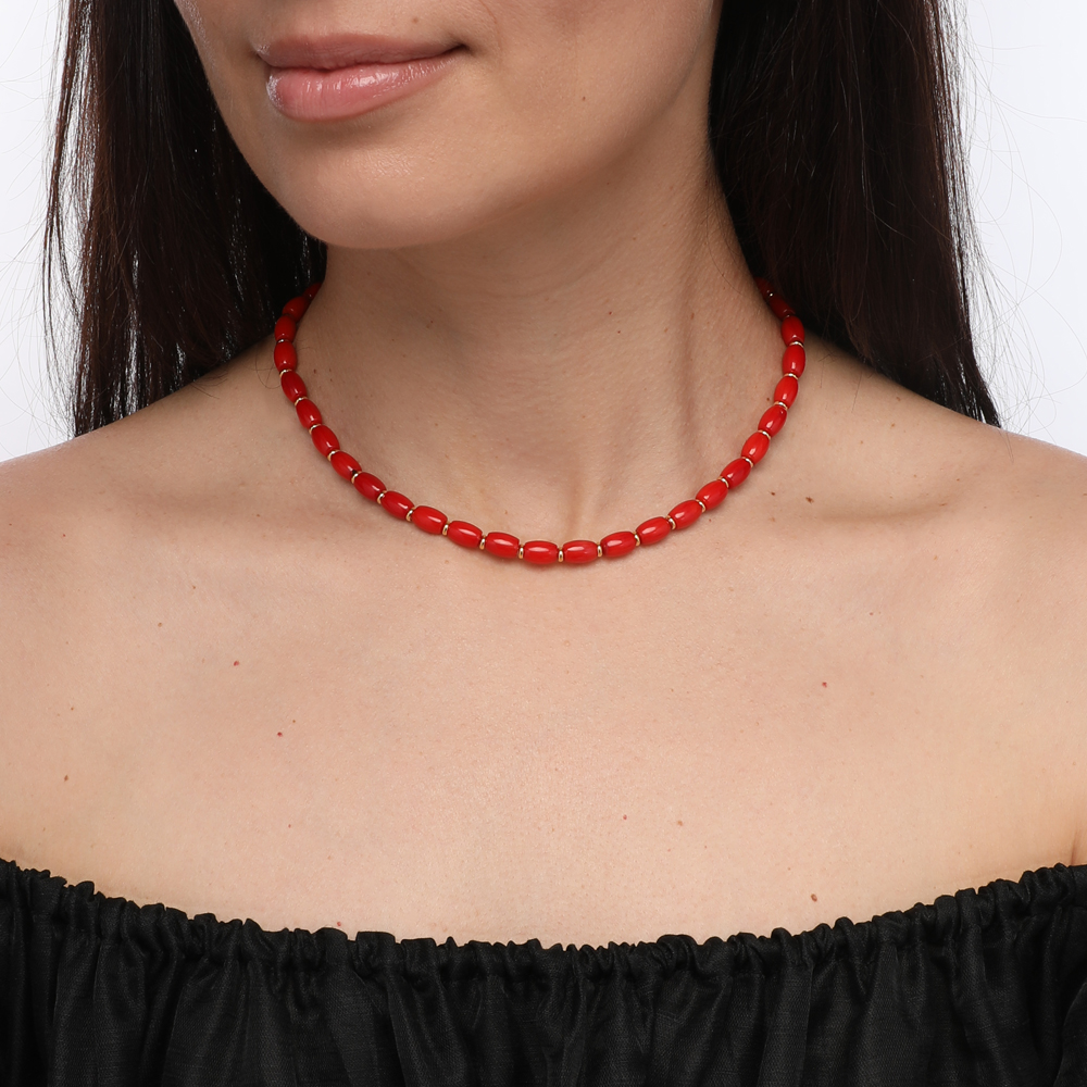 Колье Селена (коралл 8мм; покрытие золото) 41-46см
