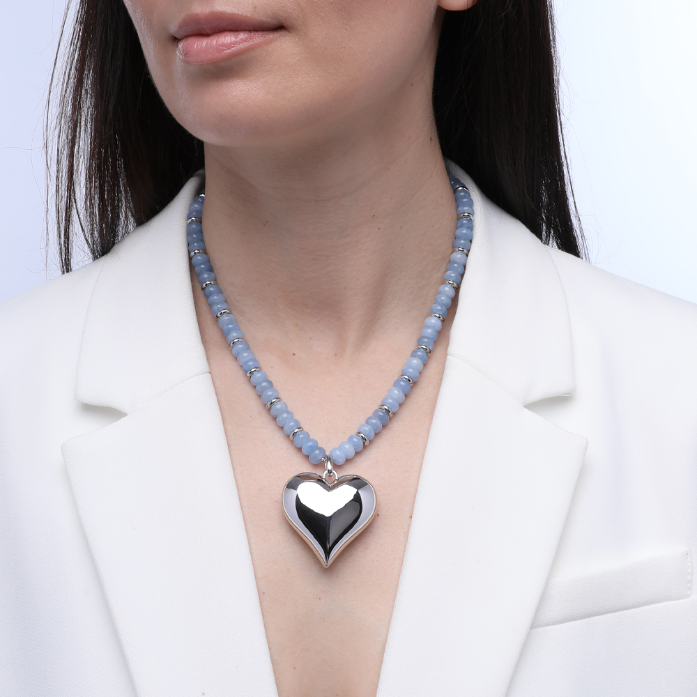 Описание: Изготовлено из ювелирного сплава на основе латуни с гальваническим покрытием родием. Изделие украшает натуральный аквамариновый кварц 8х4мм. Длина 45см. Замок-карабин с удлинителем 7см. Размер кулона 4.5х4.5см.