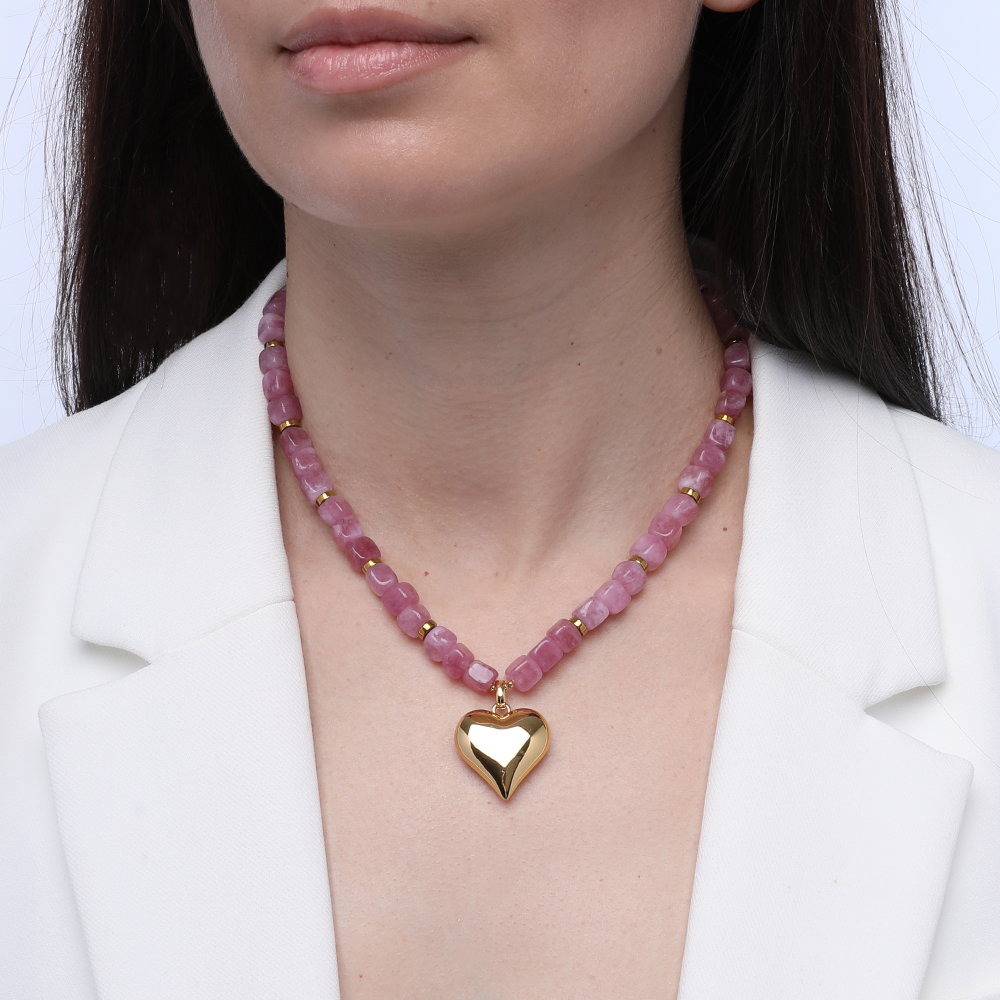 Описание: Изготовлено из ювелирного сплава на основе латуни с гальваническим покрытием золотом. Изделие украшает натуральный розовый кварц диаметром 7-8мм. Длина 42см. Замок-карабин с удлинителем 7см. Размер кулона 2.5х2.5см.