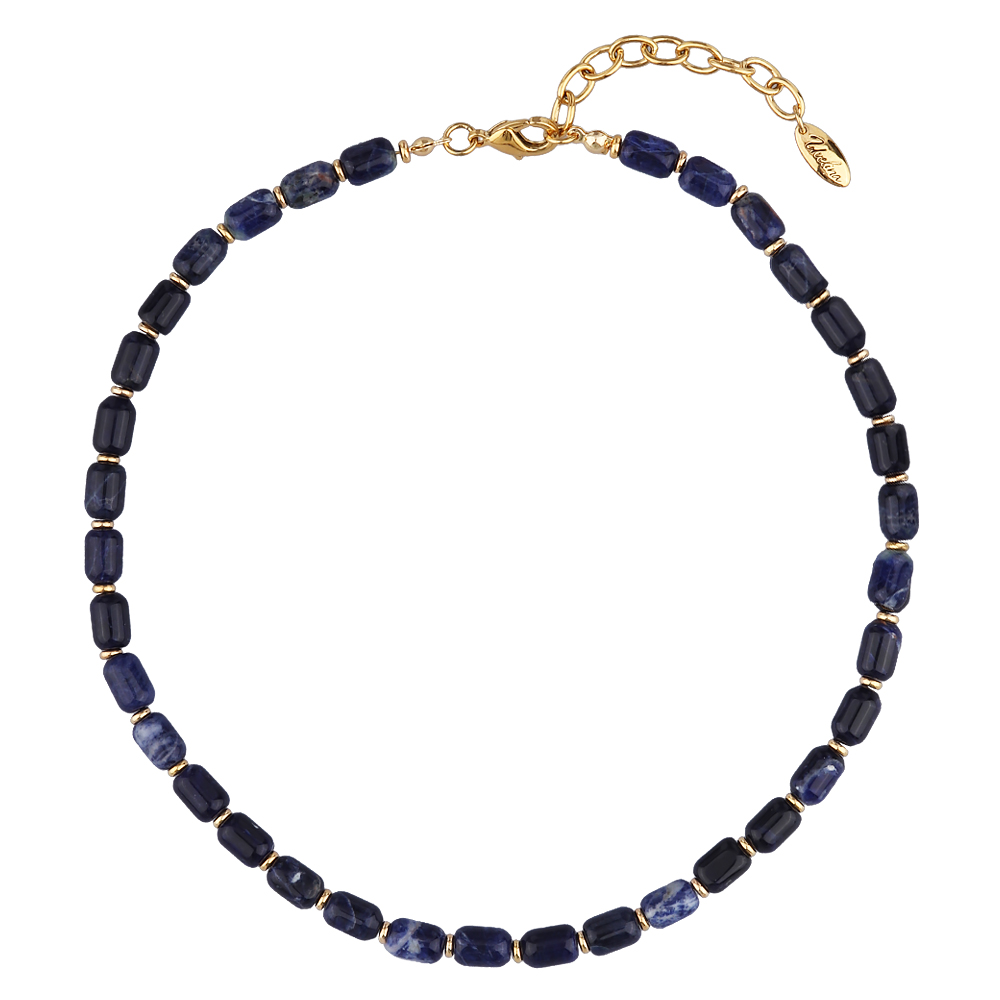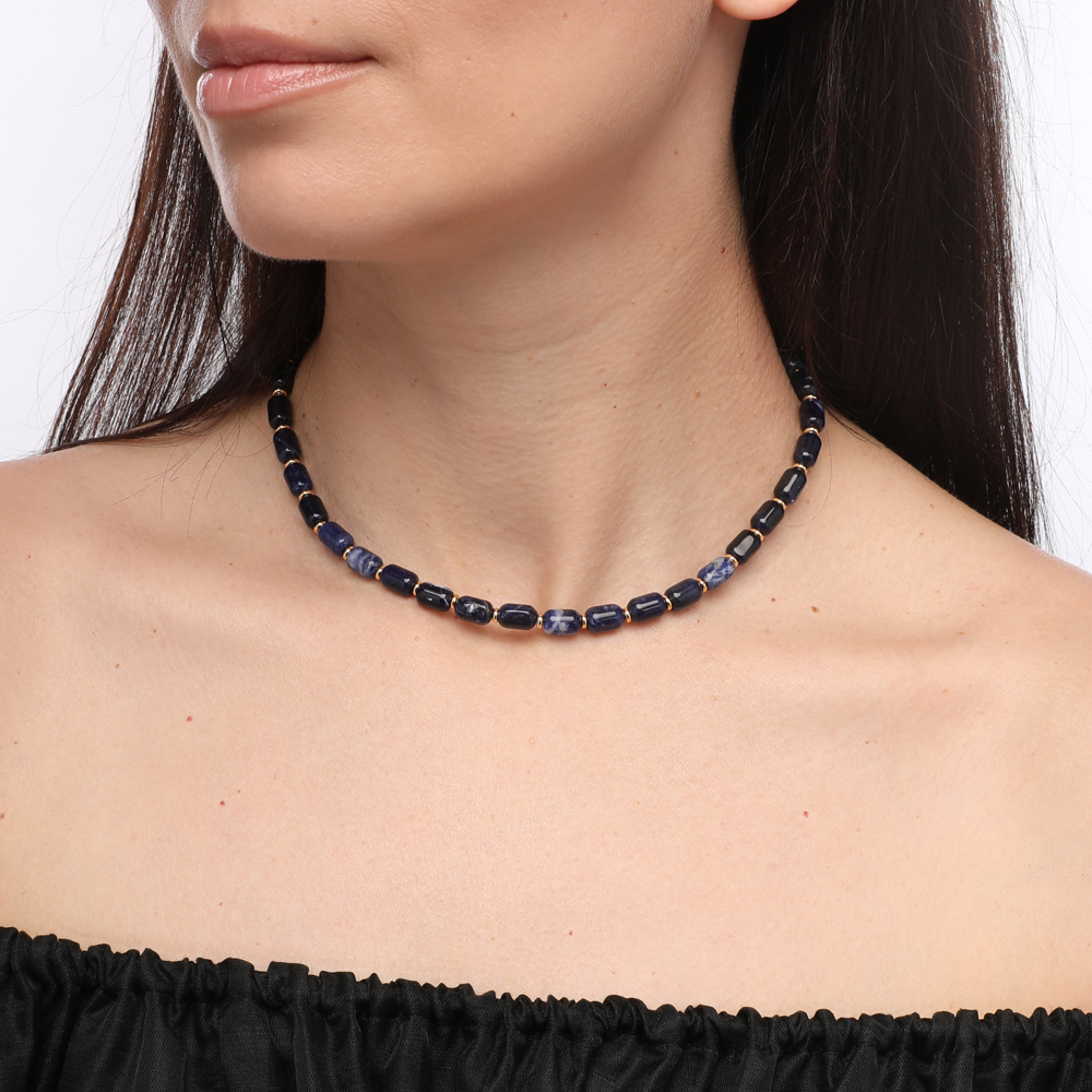 Описание: Изготовлено из ювелирного сплава на основе латуни с гальваническим покрытием золотом. Изделие украшает натуральный лазурит диаметром 8мм. Длина 42см. Замок-карабин с удлинителем 5см.