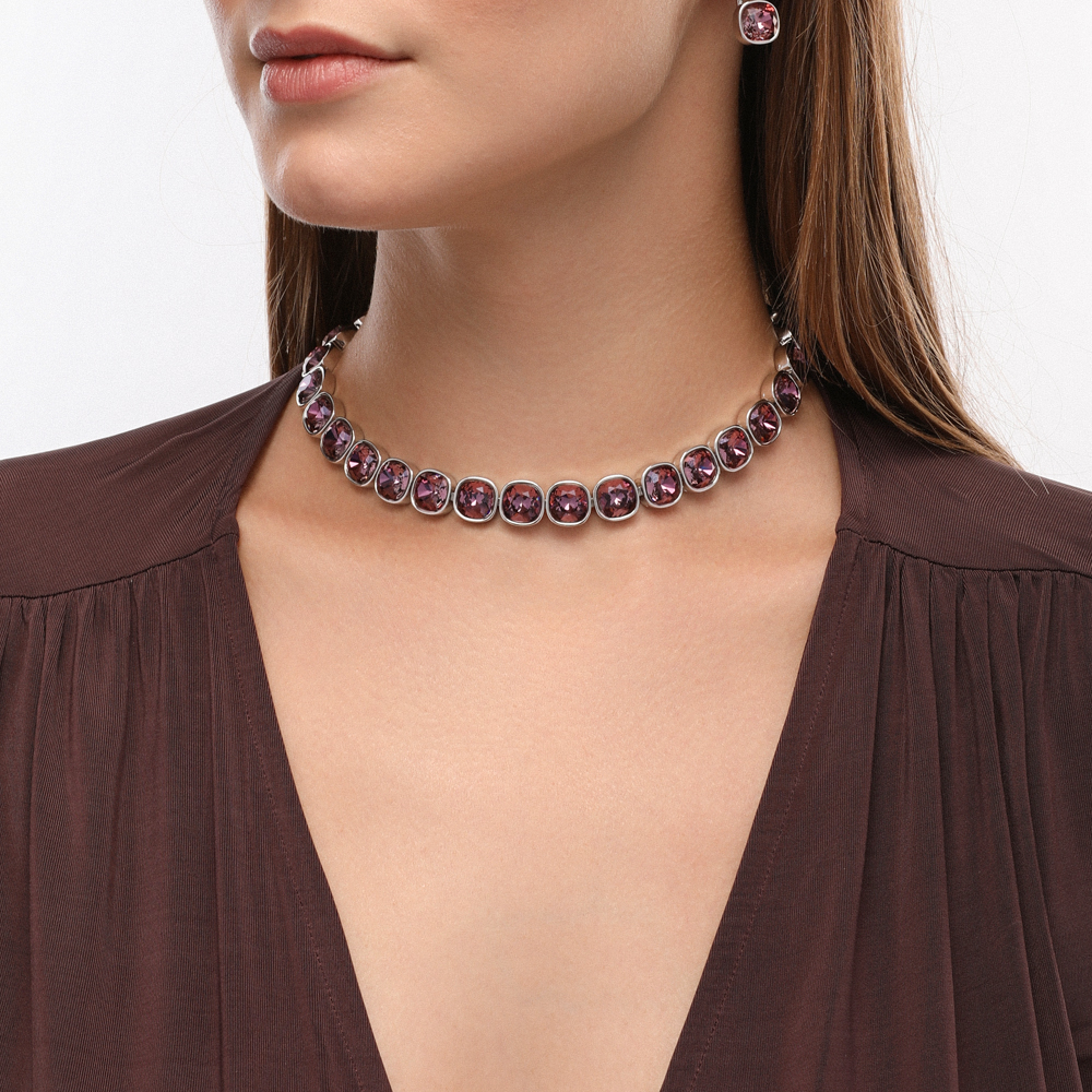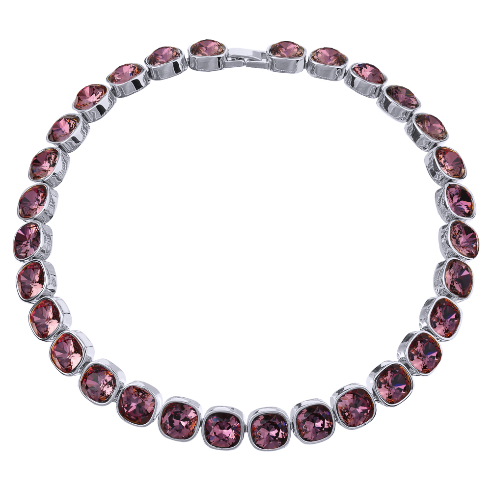 Описание: Изготовлено из ювелирного сплава на основе латуни с гальваническим покрытием родием. Изделие украшают кристаллы SW цвета бургунди диаметром 10мм. Длина 38-42см.