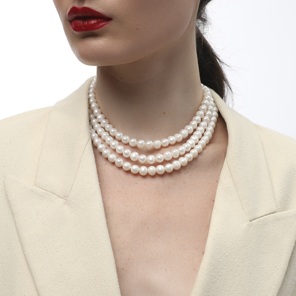 Описание: Изготовлено из ювелирного сплава на основе латуни с гальваническим покрытием золотом. Колье выполнено из натурального белого жемчуга высшего качества диаметром 10мм. Длина 40-48см. *Цвет и форма жемчужин может отличаться от изображенной на фото.