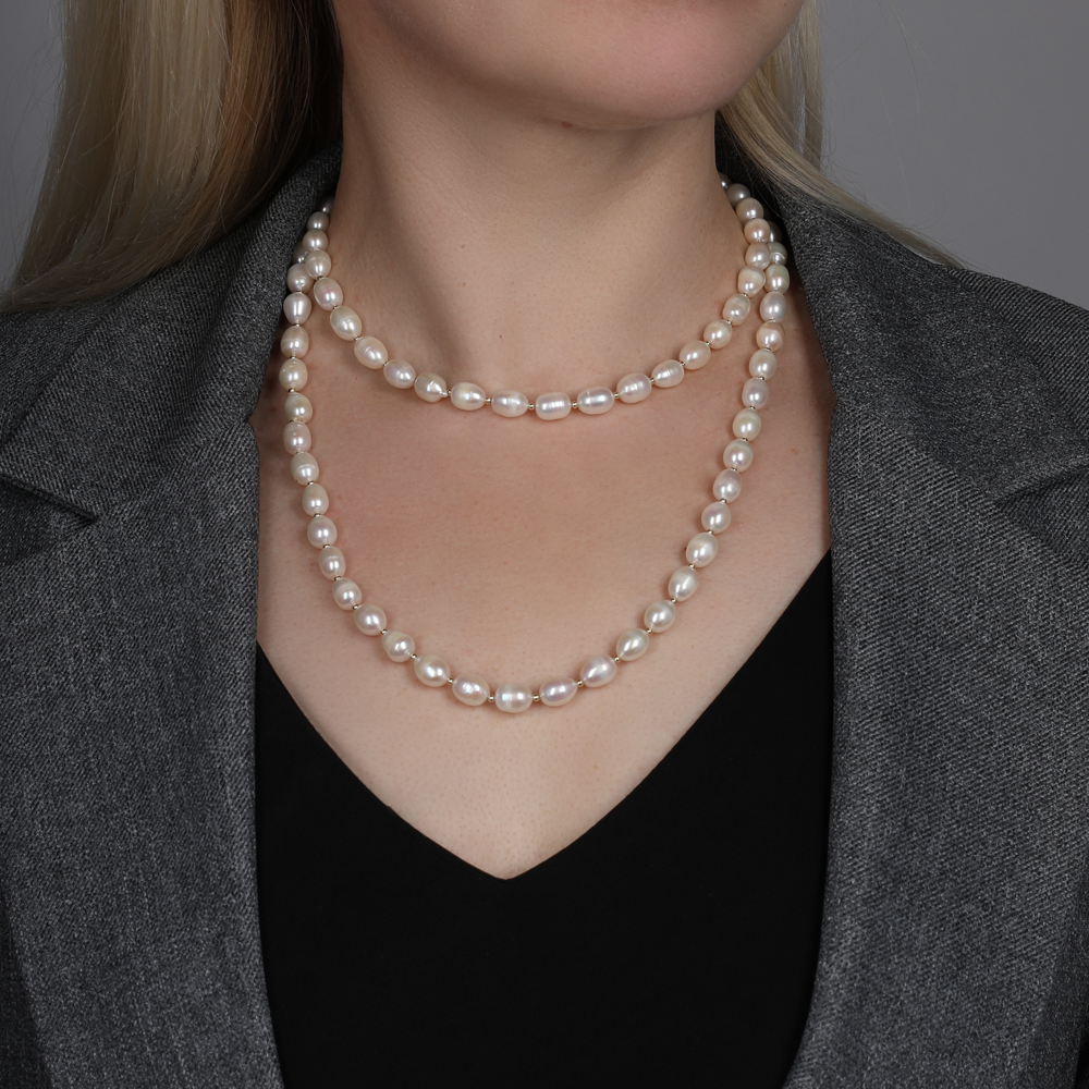 Описание: Изготовлено из ювелирного сплава на основе латуни с гальваническим покрытием золотом. Изделие украшает натуральный жемчуг диаметром 6мм белого цвета. Длина 92см. Удлинитель 5см.