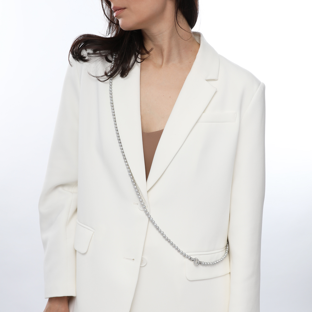 Описание: Изготовлено из ювелирного сплава на основе латуни с гальваническим покрытием родием. Колье выполнено из натурального серо-голубого жемчуга высшего качества диаметром 7-8мм и украшено декоративным замком из фианита белого цвета. Длина 140см.