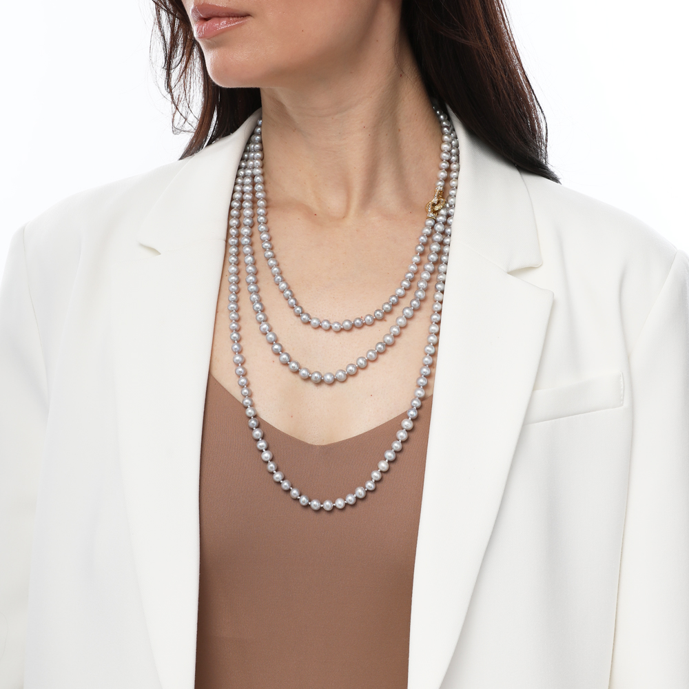 Описание: Изготовлено из ювелирного сплава на основе латуни с гальваническим покрытием золотом. Колье выполнено из натурального серо-голубого жемчуга высшего качества диаметром 7-8мм и украшено декоративным замком из фианита белого цвета. Длина 200см.