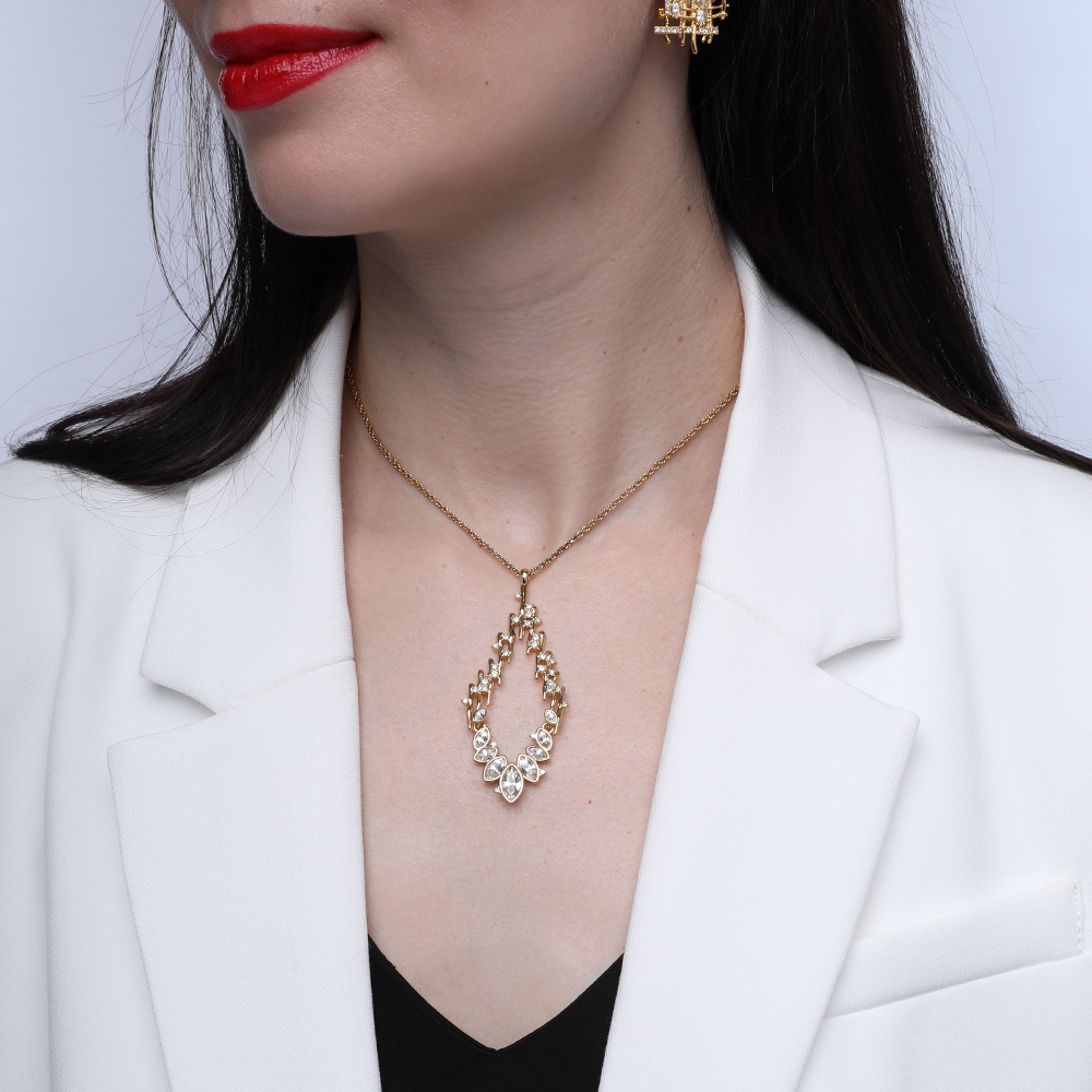 Кулон Ажур (кристаллы SW белые; покрытие золото) 90см