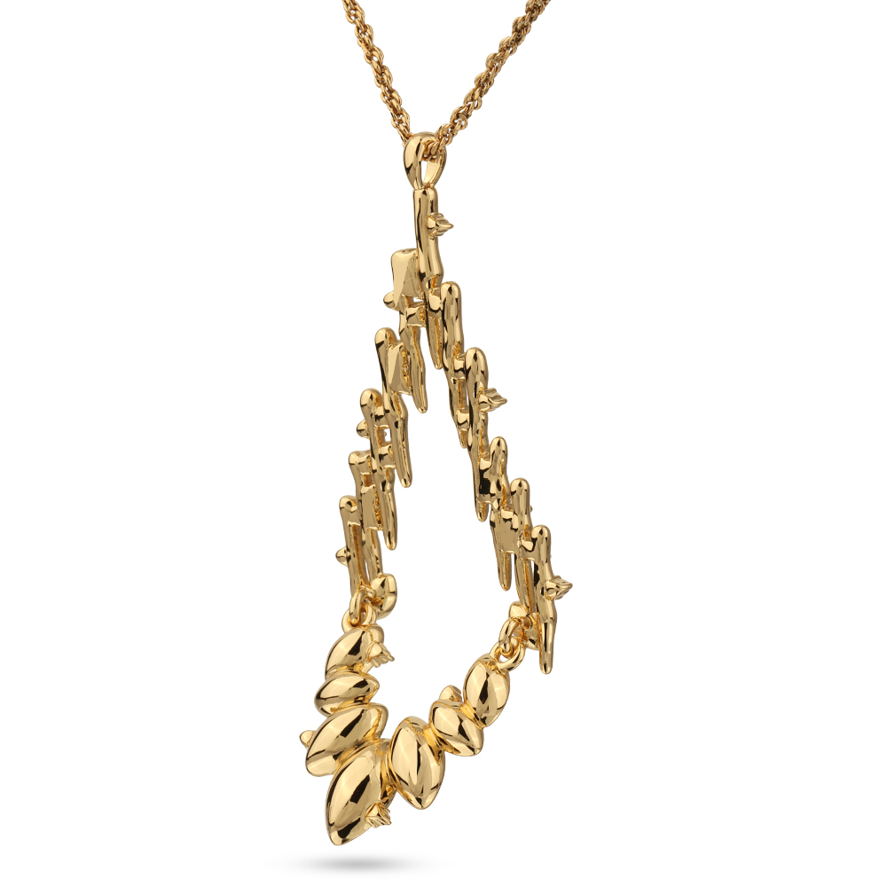 Описание: Изготовлено из ювелирного сплава на основе латуни с гальваническим покрытием золотом. Изделие украшают кристаллы SW белого цвета. На цепочке установлен бегунок регулировки длины. Максимальная длина 90см. Кулон 7х3см.