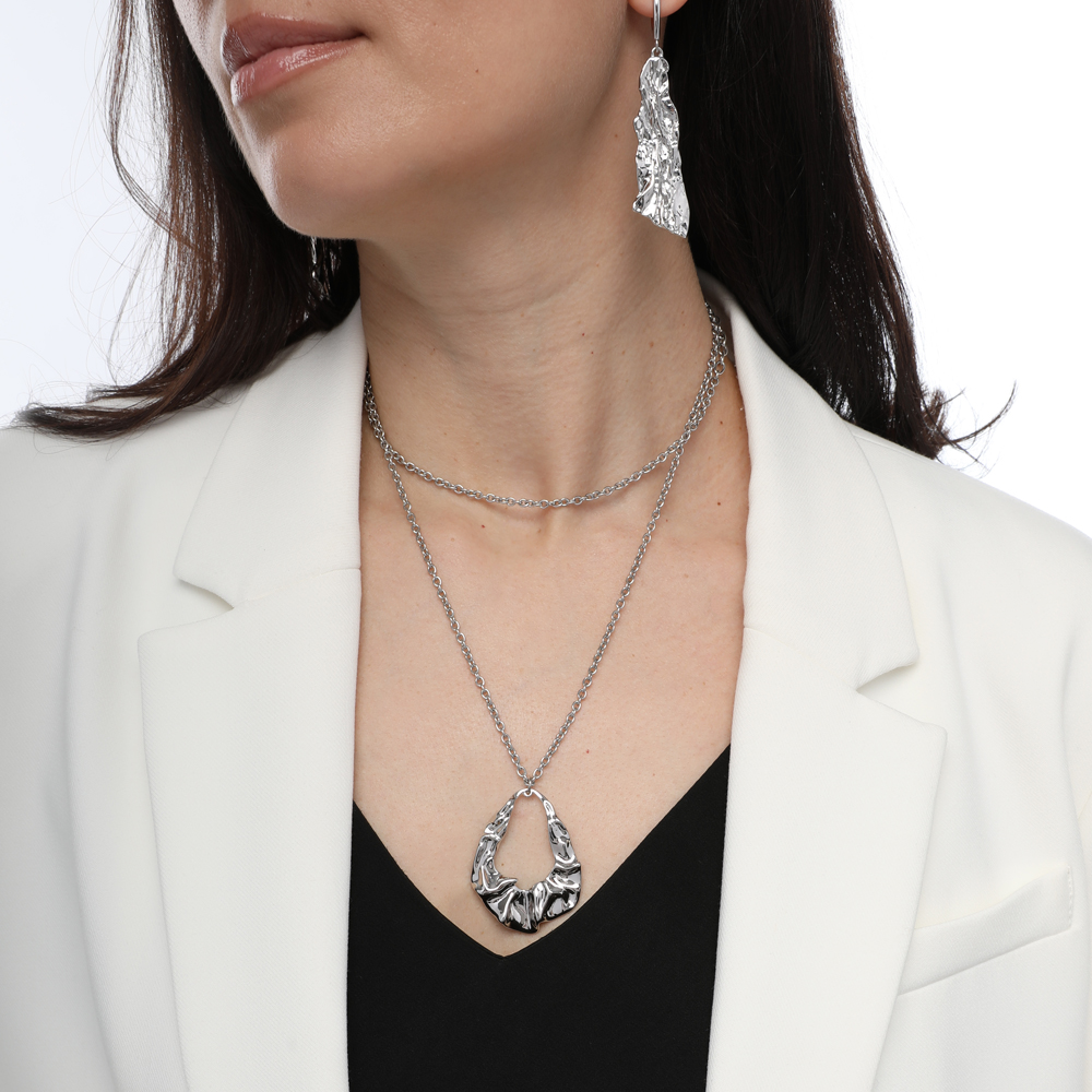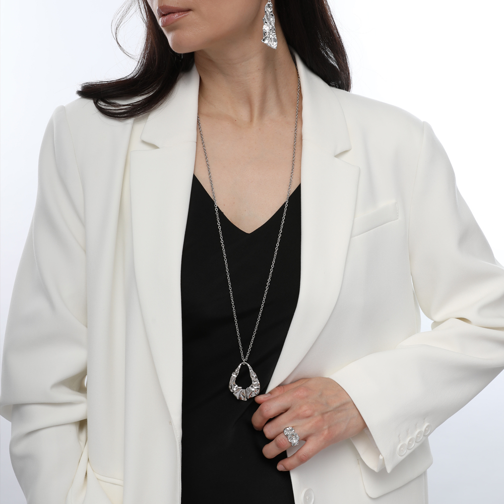 Описание: Изготовлено из ювелирного сплава на основе латуни с гальваническим покрытием родием. Длина кулона 90см. Размер кулона 5х3, 5см.