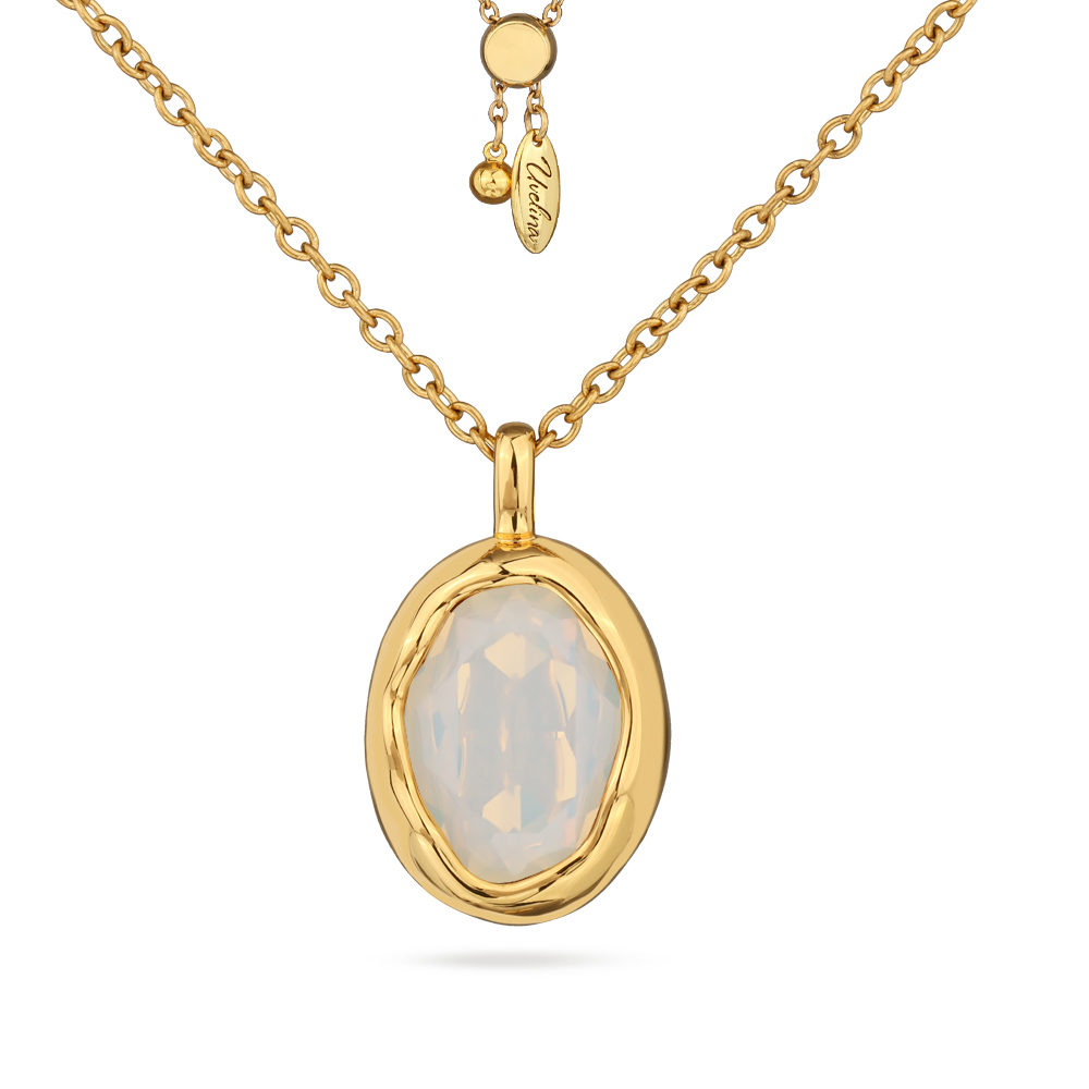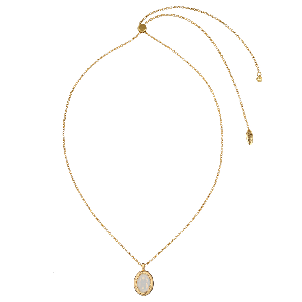 Описание: Изготовлено из ювелирного сплава на основе латуни с гальваническим покрытием золотом. Изделие украшают кристаллы SW цвета белый опал. На цепочке установлен бегунок регулировки длины. Максимальная длина 80см.